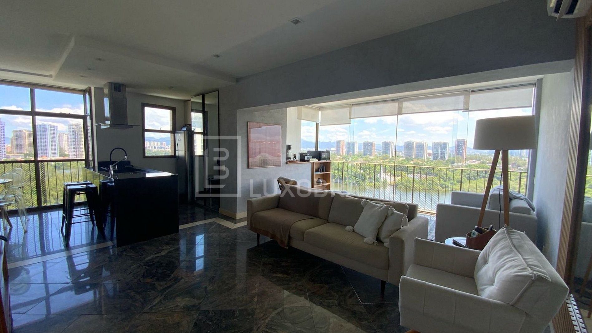 With 2 suites, the master suite features a double bed, and the second suite includes a sofa bed, comfortably accommodating up to 4 guests. The living and dining areas are integrated into an open-concept kitchen, fully equipped — every space was designed to promote well-being and functionality. Large windows offer panoramic views of the sea and lagoon, providing natural light and unforgettable moments. The master suite also includes a charming balcony that integrates a practical laundry area for added convenience.