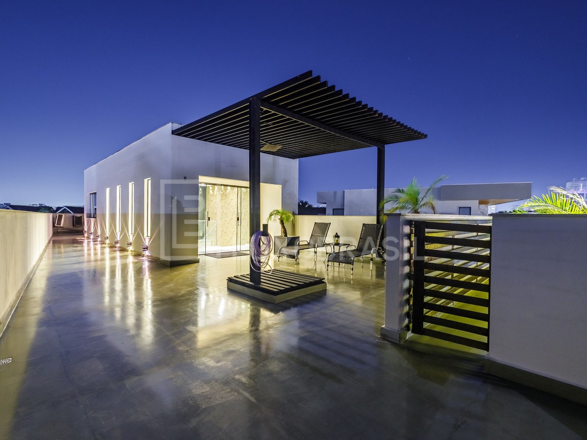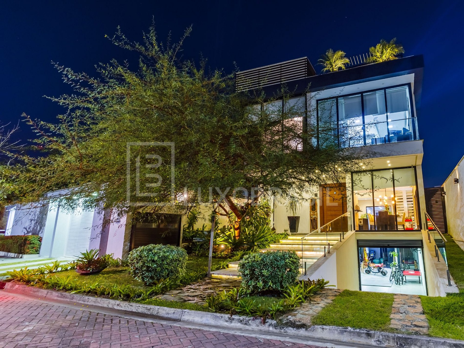 Distribuida en tres niveles, con acceso por ascensor, la propiedad destaca por su arquitectura contemporánea, con amplias superficies de vidrio y tonos blancos, ofreciendo ambientes amplios, integrados y con excelente iluminación natural.