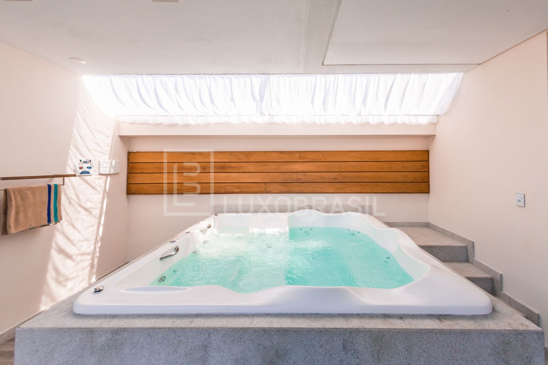 Dias perfeitos esperam para aqueles que optarem estar nesta casa. Moderna, bem decorada, nova e bem equipada, oferece como diferencial sauna, jacuzzi externa e interna, generosas sacadas, adega de vinho e frigobar, cervejeira, cozinha bem equipada com cooktop e todos os cômodos são preparados com capricho para que os hospedes tenham uma experiencia inesquecível