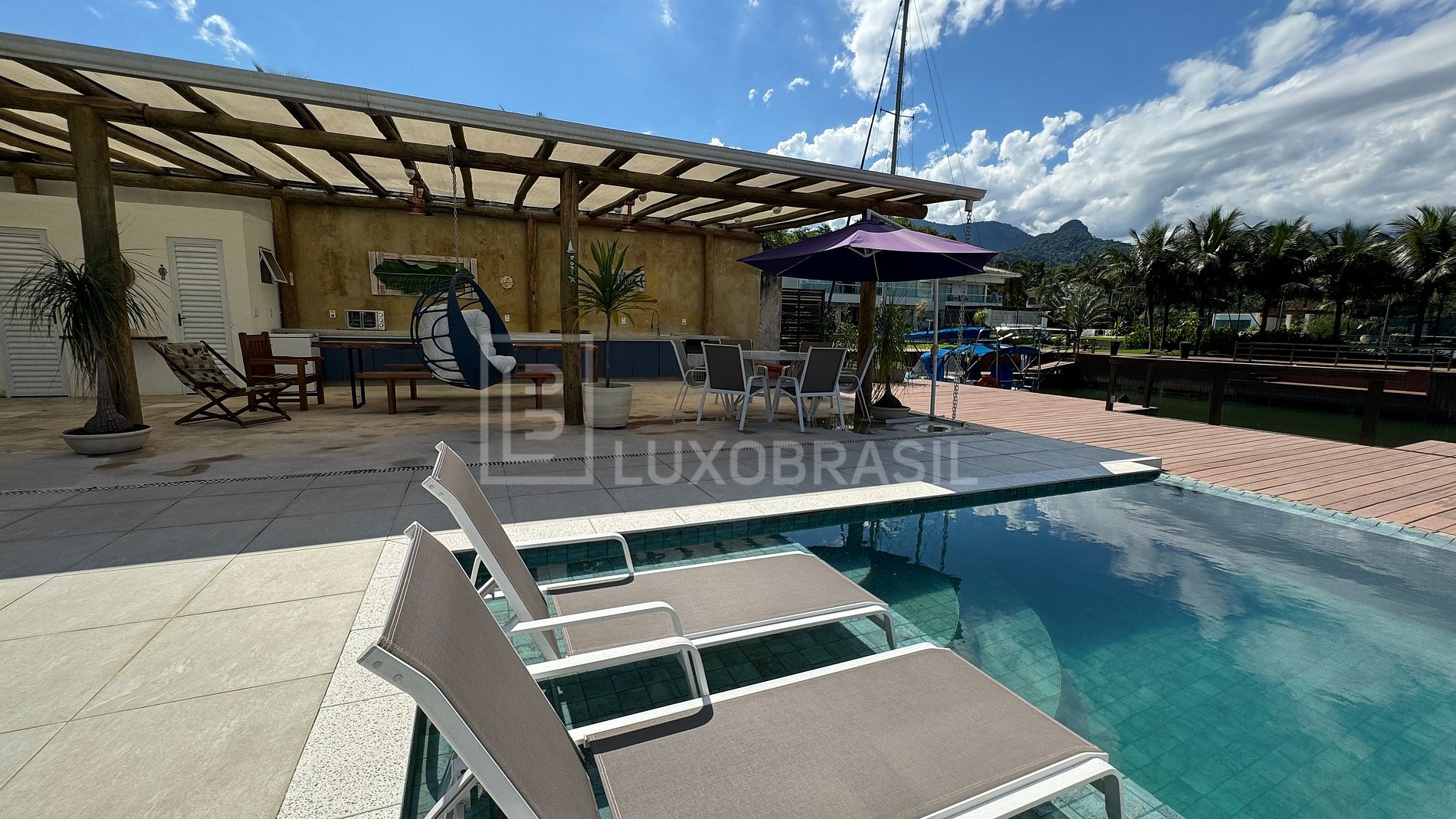 La elegante cocina, totalmente equipada, se funde armoniosamente con el salón y el comedor, creando un espacio sociable y funcional. La gran terraza exterior es el punto culminante, ofreciendo impresionantes vistas del Canal de Porto Bracuhy. Con una refrescante piscina, una relajante sauna, una barbacoa y un horno, esta zona exterior es una invitación irresistible al entretenimiento al aire libre, haciendo que cada momento sea memorable.