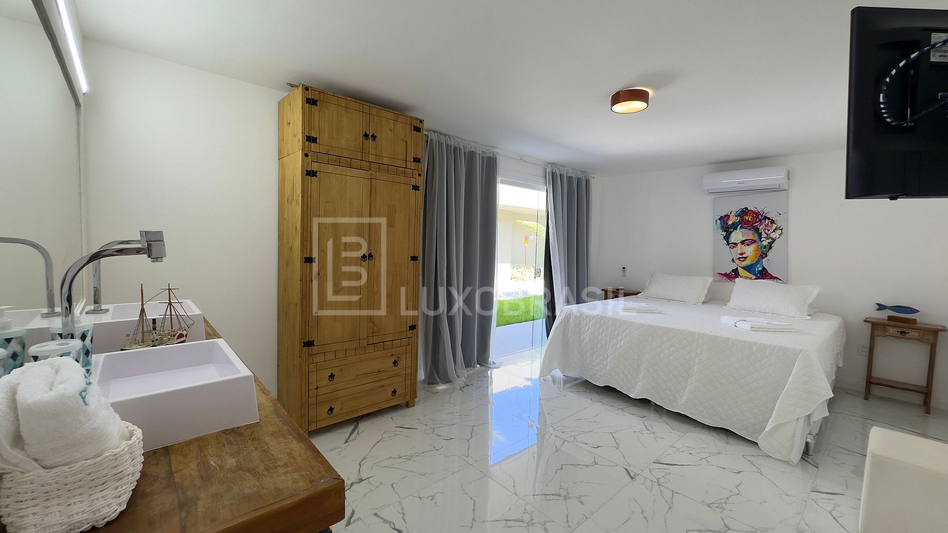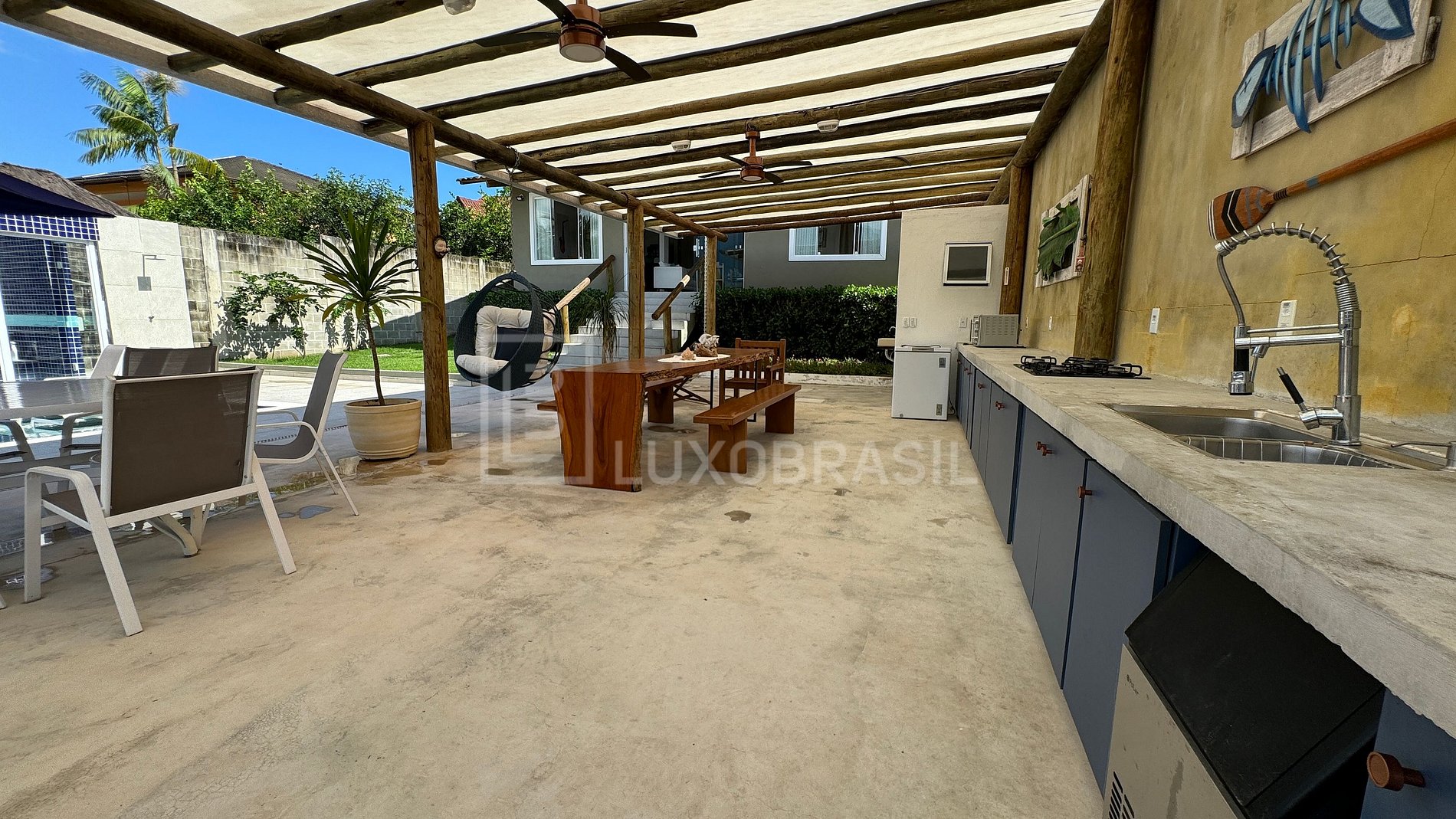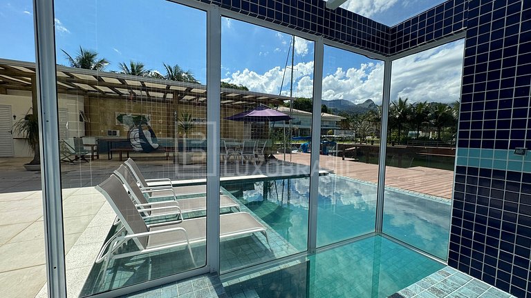La elegante cocina, totalmente equipada, se funde armoniosamente con el salón y el comedor, creando un espacio sociable y funcional. La gran terraza exterior es el punto culminante, ofreciendo impresionantes vistas del Canal de Porto Bracuhy. Con una refrescante piscina, una relajante sauna, una barbacoa y un horno, esta zona exterior es una invitación irresistible al entretenimiento al aire libre, haciendo que cada momento sea memorable.