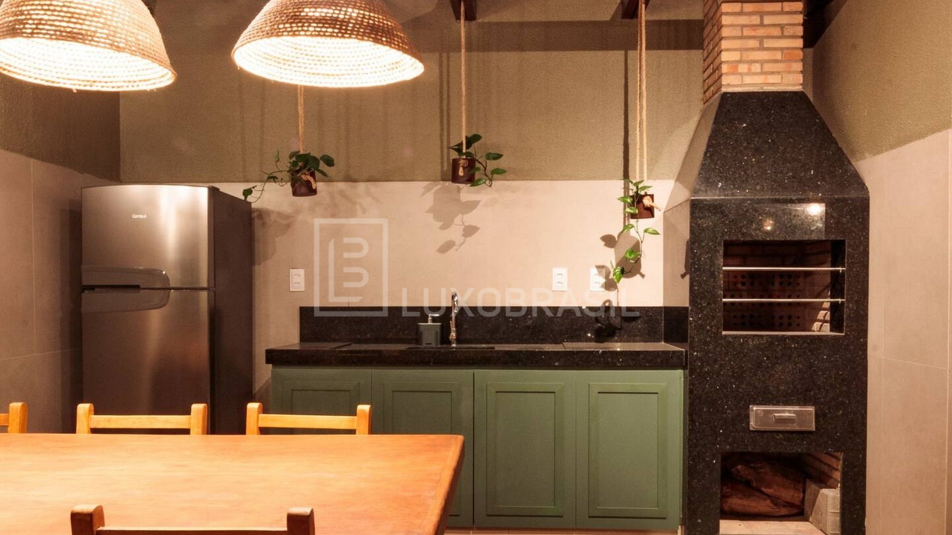 Área gourmet con parrilla y jardín integrado