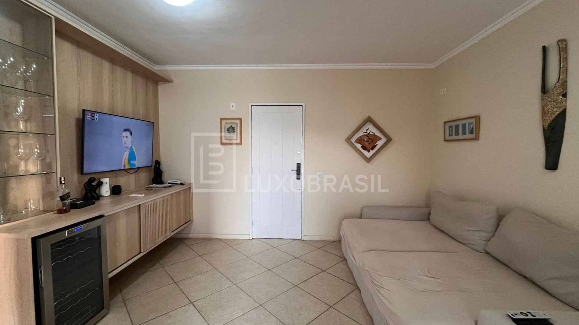 LUXOBRASIL vende un apartamento de 1 dormitorio en Barra Beach, con sala de estar, cocina y baño.