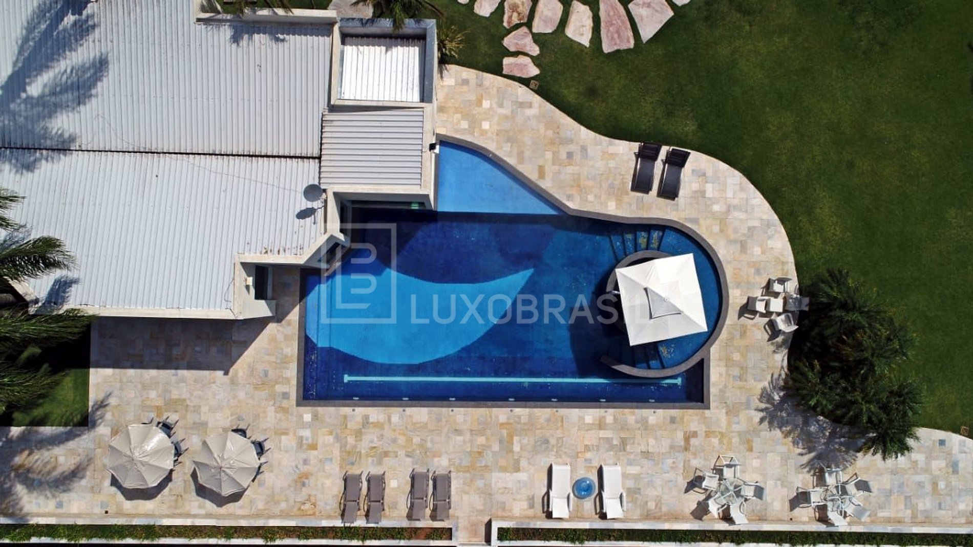 La propiedad cuenta con un muelle para embarcaciones grandes, un helipuerto, una maravillosa vista del lago, sol de la mañana, una gran piscina con playa e hidromasaje, una sala de vapor, un jacuzzi interior con agua climatizada, una zona gourmet completa con barbacoa, una cervecería eléctrica profesional, un equipo de música bluetooth y una mesa de cartas.