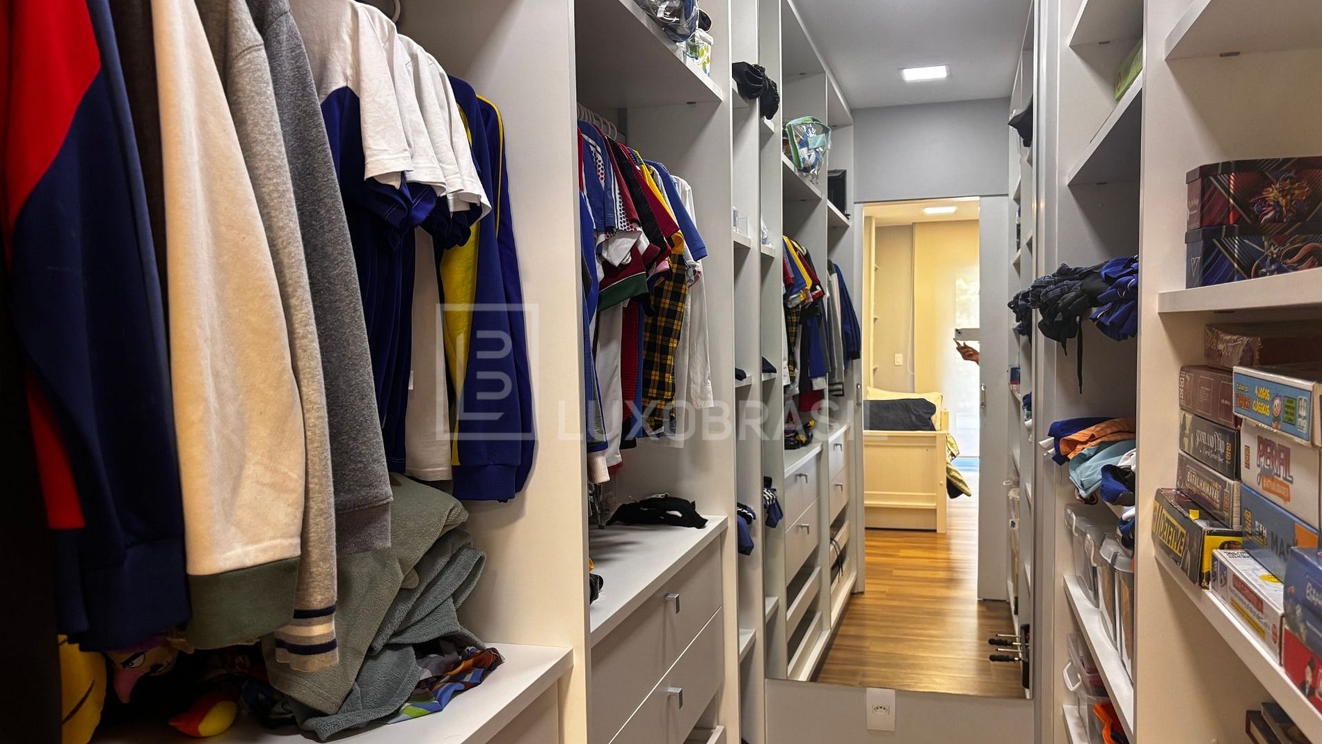 En la planta baja dispone de sala de estar en dos ambientes, balcón, home theater, aseo, comedor con acceso al área exterior, un dormitorio que puede utilizarse como oficina, cocina amplia y planificada, lavandería y dos dependencias de servicio con baño. En la planta superior, hay una sala de TV, aseo, cinco dormitorios con armarios empotrados y balcón, siendo uno de ellos una suite con vestidor, además de dos baños adicionales. El inmueble cuenta con cuatro plazas de garaje y sistema de energía solar.