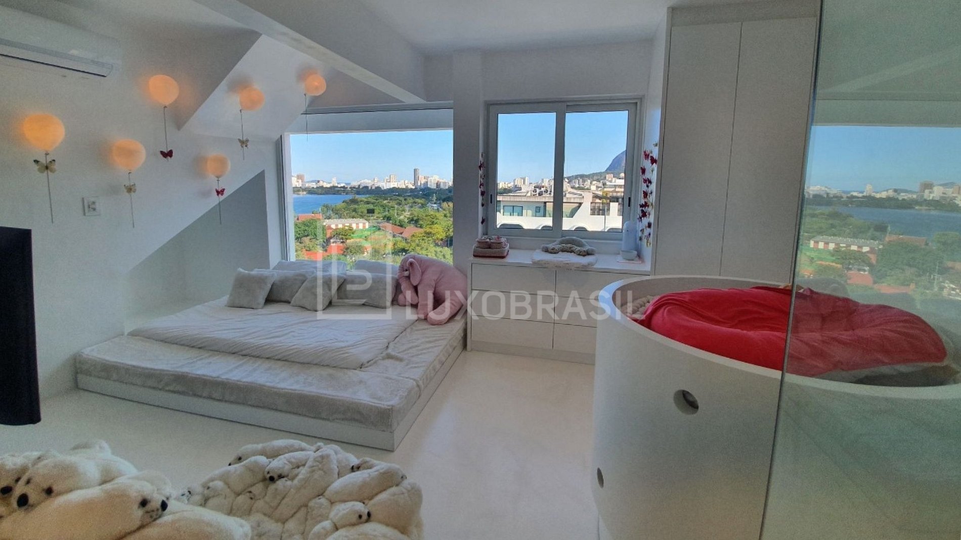 El ático ofrece vistas a la Laguna, Corcovado, Dois Irmãos y Pedra da Gávea. Los acabados son de alto nivel, con mobiliario de origen italiano y francés.