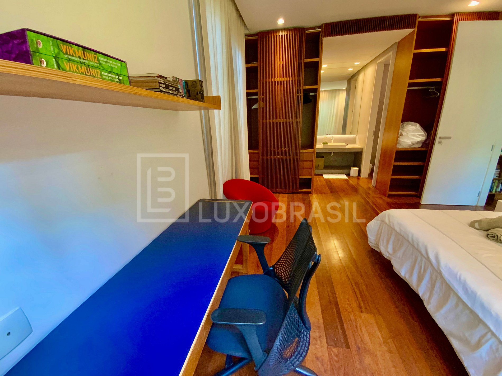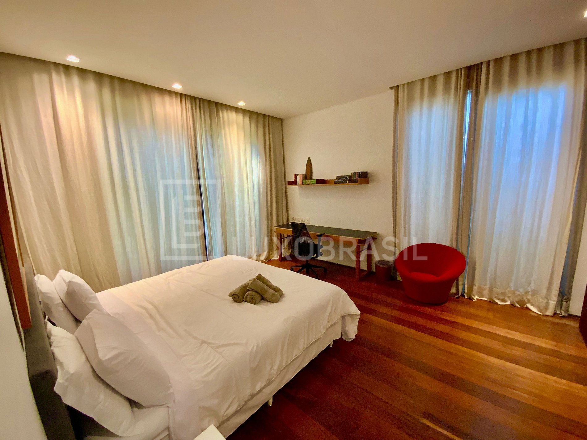 En la planta superior se encuentran las cuatro suites principales de la casa, dos con preciosas vistas al mar y dos orientadas al jardín. La suite principal dispone de hidromasaje, antesala con escritorio y una maravillosa vista al mar y a la playa de Joatinga.