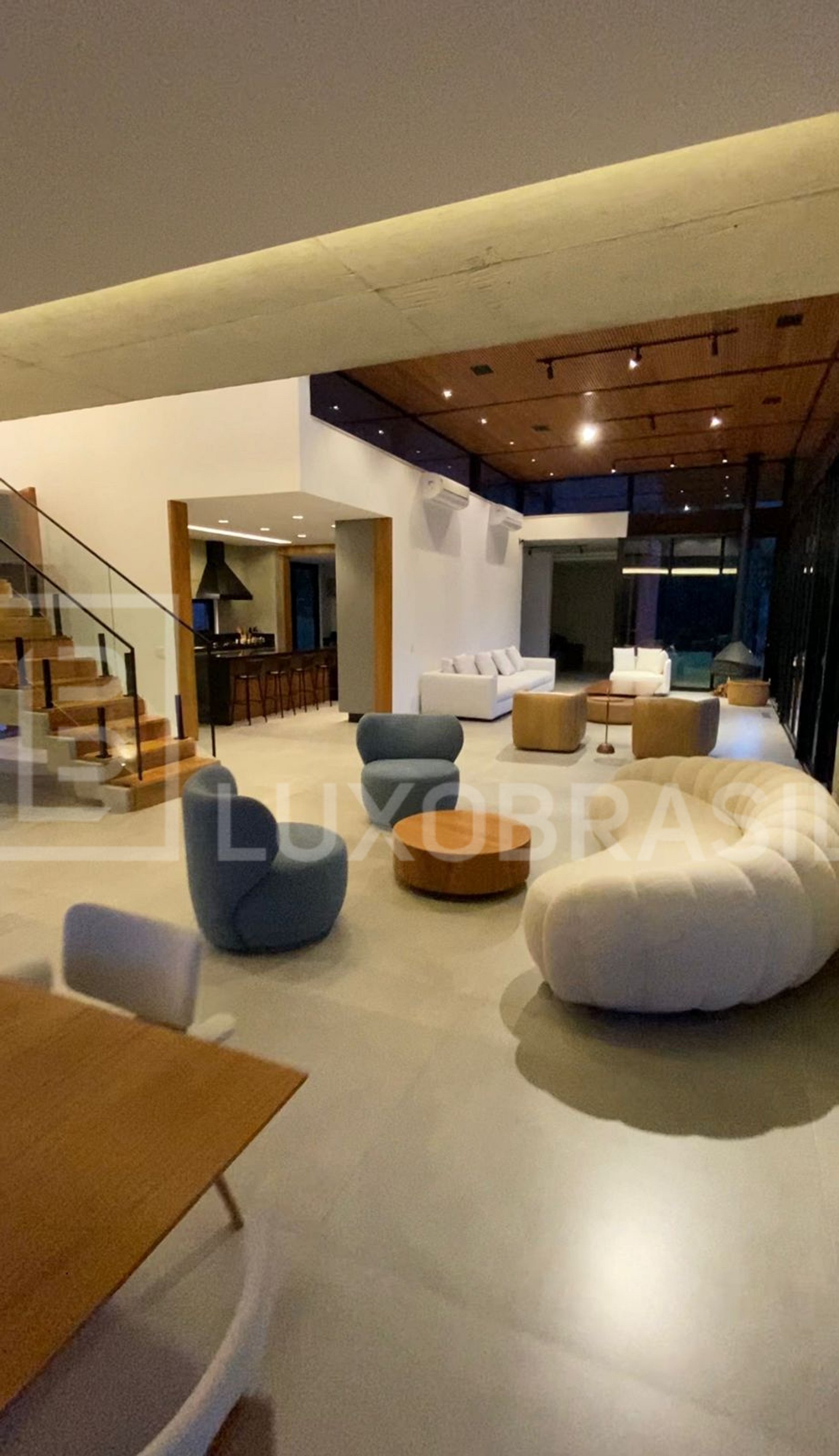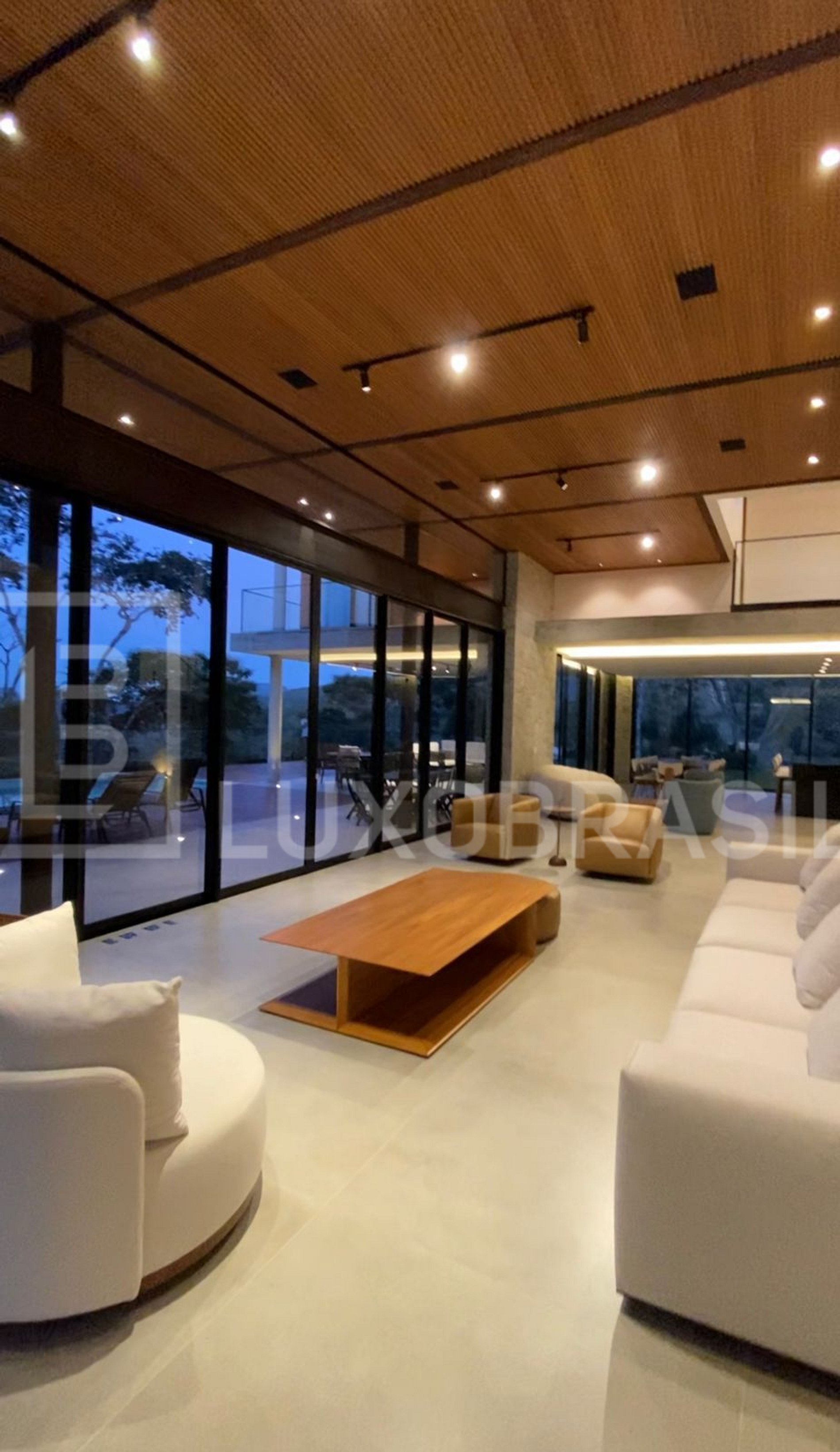 Sala com três ambientes, área gourmet, equipada com churrasqueira. Acomode-se junto à lareira nas noites frias ou dê um mergulho na piscina com borda infinita, curtindo a paisagem incrível ao seu redor. Relaxe na sauna ou divirta-se com uma partida de futebol ou basquete na área de lazer.