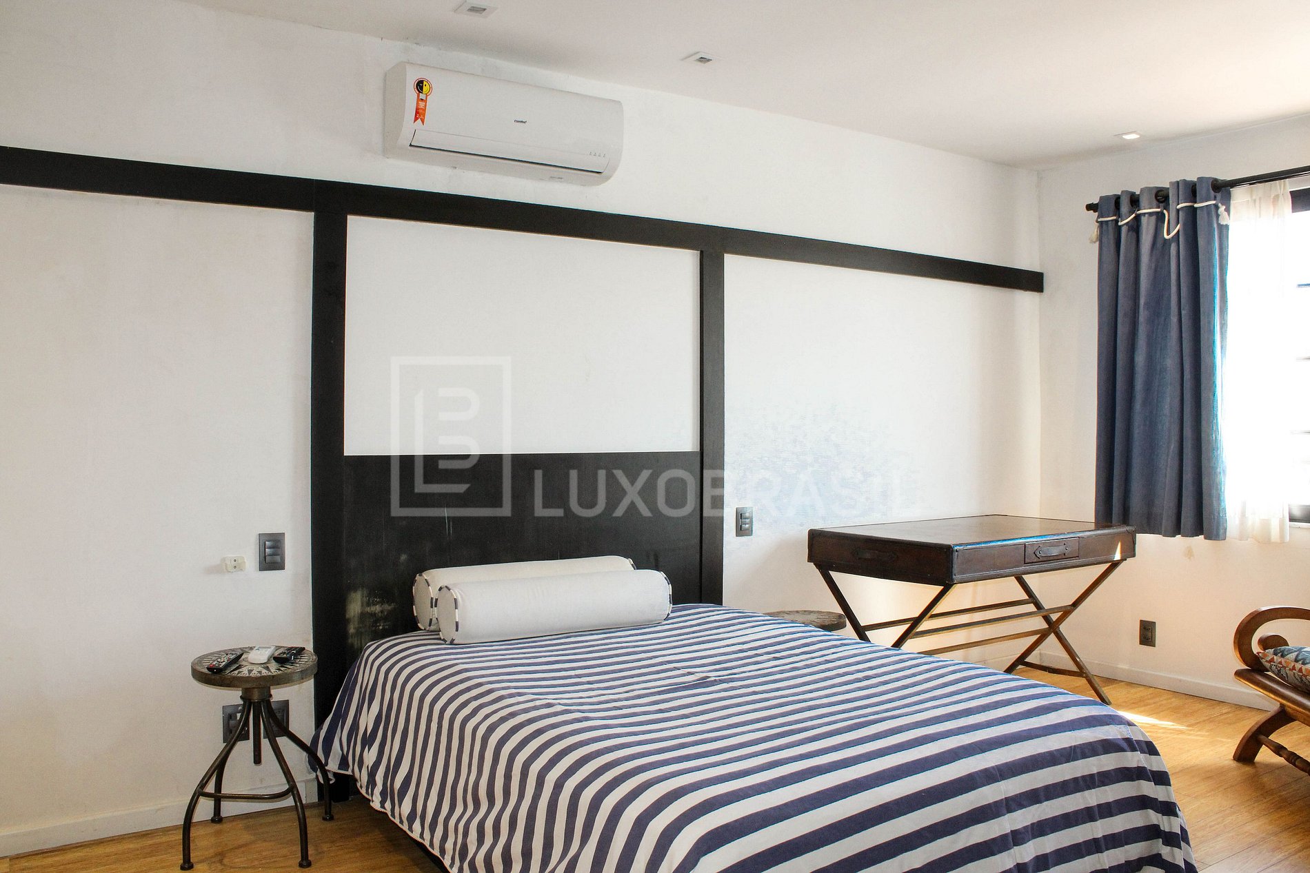Bela casa localizada à beira do canal da Joatinga, a casa proporciona uma estadia luxuosa e confortável. A residência conta com uma suíte master equipada com hidromassagem, duas suítes espaçosas e um quarto adicional, todos com ar-condicionado, televisores e camas king ou queen, garantindo o máximo de conforto aos locatários.