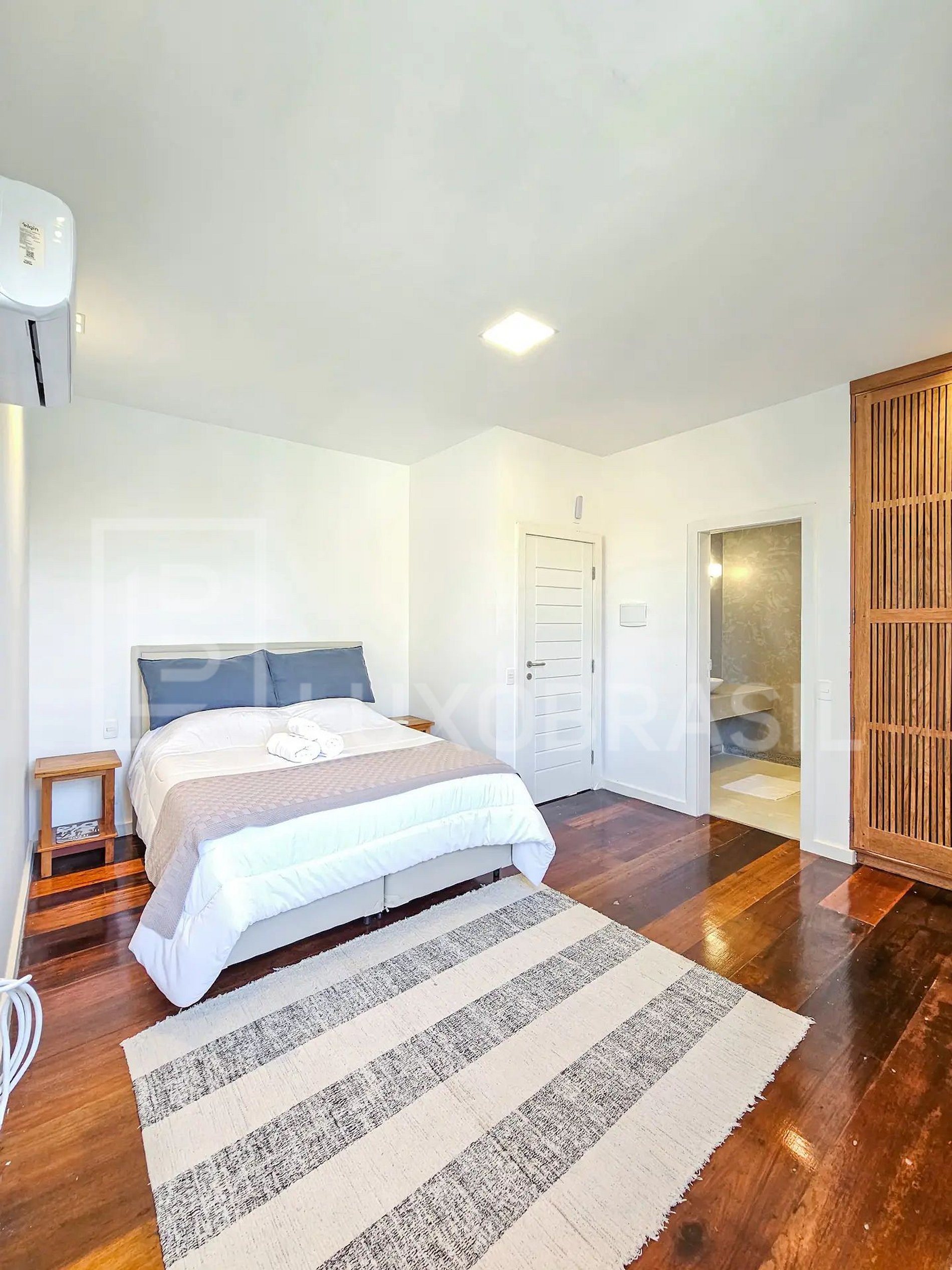 Diseñada por Hélio Pellegrino (2023), la residencia se destaca por su arquitectura contemporánea, espacios amplios y bien ventilados, integrando confort, sofisticación y una conexión directa con la naturaleza.