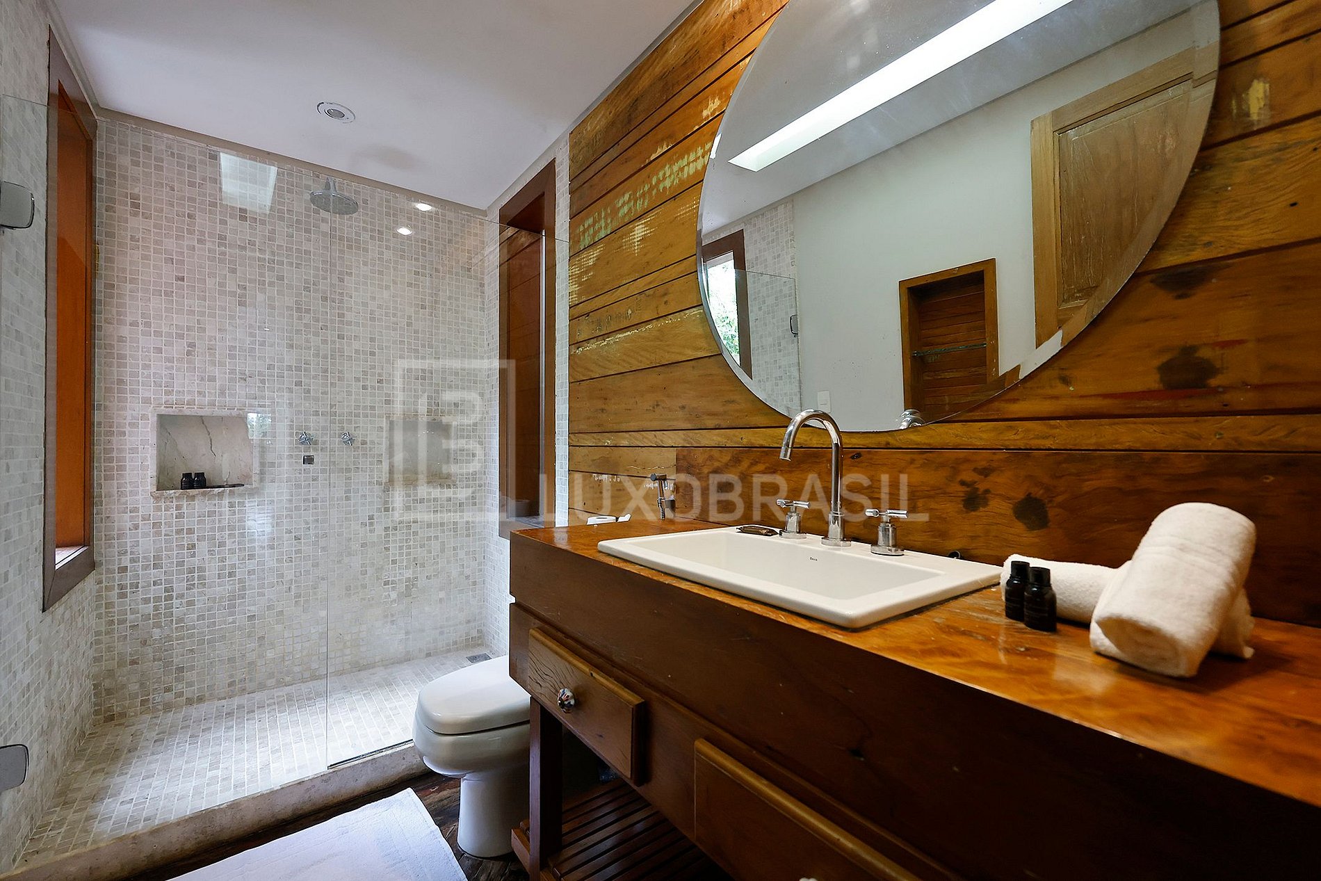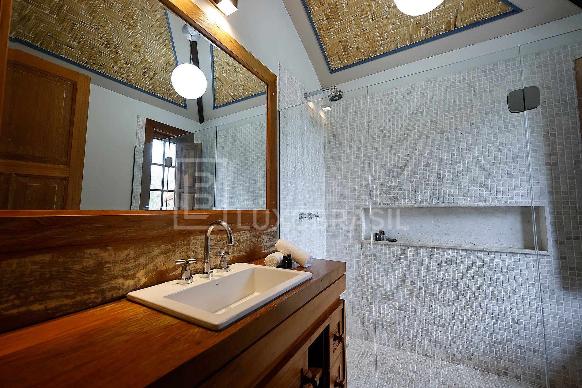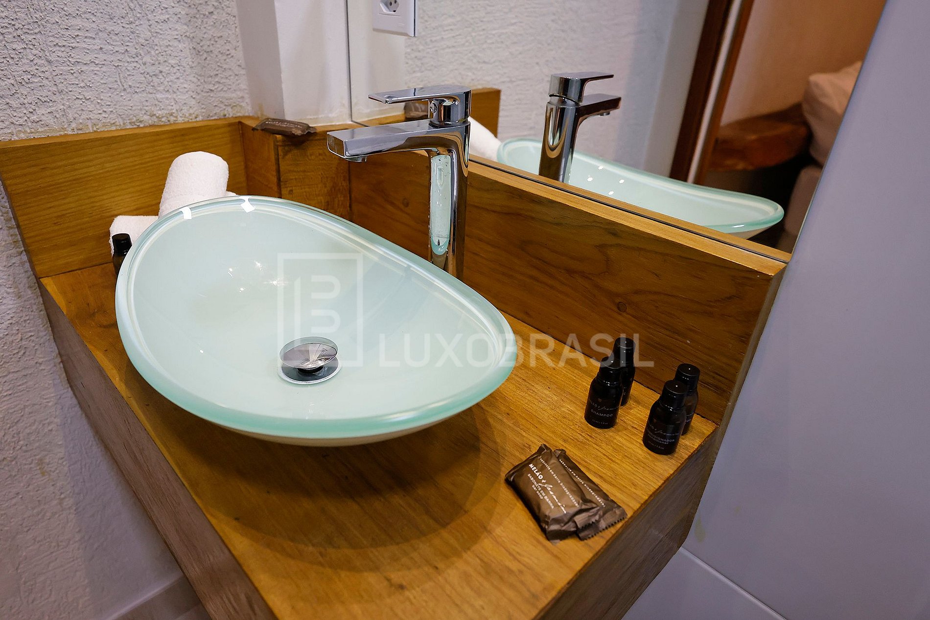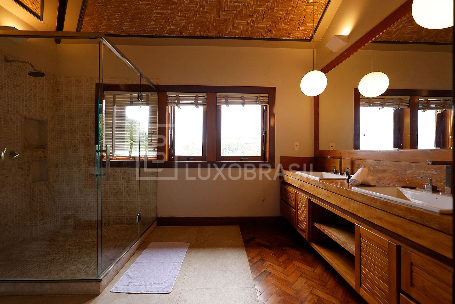 A propriedade conta com 07 suítes e um total de 09 banheiros, além de sala de jantar, sala de cinema, garagem para 04 carros e uma casa de caseiro.