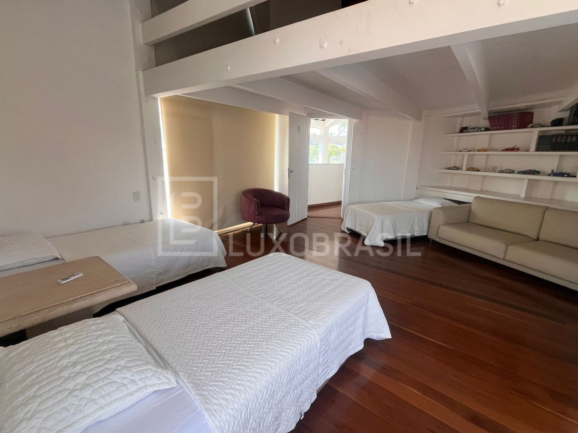 La casa tiene una gran zona al aire libre con piscina, barbacoa con cocina y banco y una gran cubierta. Amplia sala de estar con bar, cocina, comedor, 05 suites con decoración moderna, grandes lienzos y esculturas.
