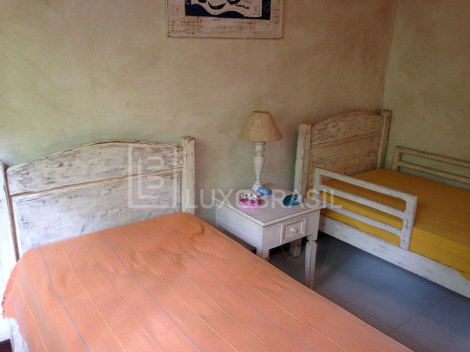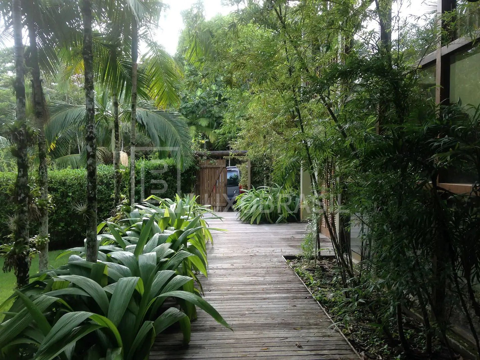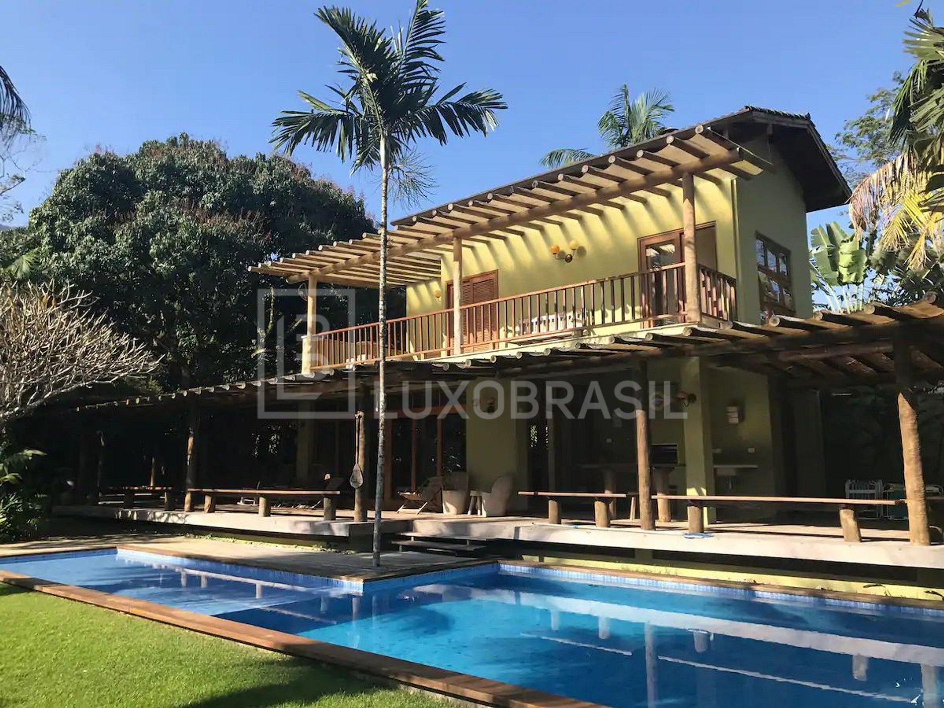 La propiedad cuenta con 1.000m², con 05 suites, 04 de los cuales están en la planta superior dividido de la siguiente manera: 03 suites en el ala izquierda de las habitaciones, dos con camas dobles y una con dos camas individuales, una de las cuales es una cama doble. También hay una suite con una gran terraza en la planta superior del ala derecha y otra suite con una cama individual en la planta baja, junto a la entrada, aire acondicionado, Sky TV, Wi-Fi, amplio jardín, piscina y zona de barbacoa privada en un condominio rodeado de bosque atlántico. La casa también tiene una zona de barbacoa privada, un aseo y una puerta balcón al jardín. Hay toallas para su uso después de la piscina, por ejemplo, pero los huéspedes deben traer su propia ropa de cama y toallas.