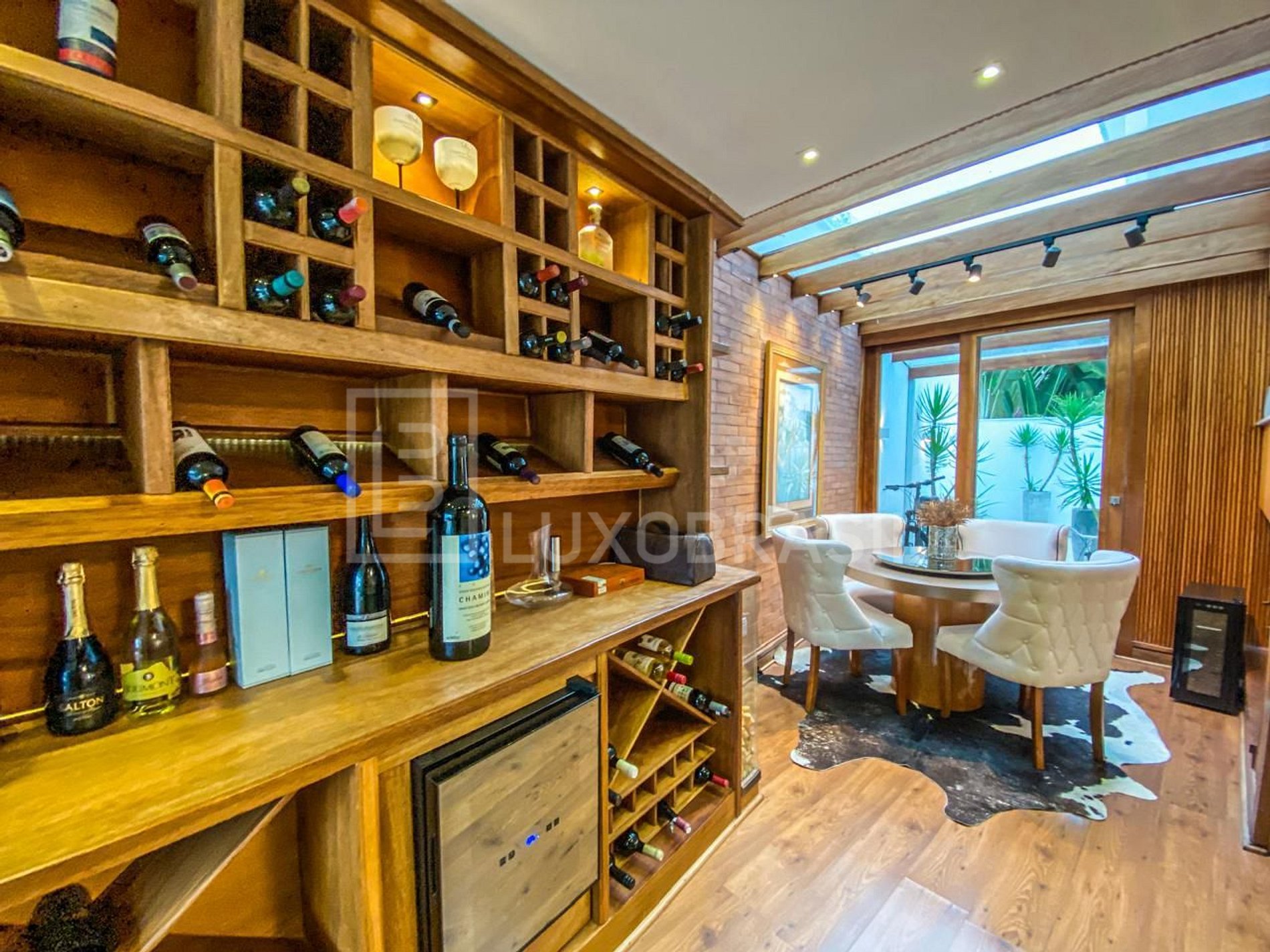 La propiedad cuenta con 3 pisos y 4 suites, todas con aire acondicionado. La amplia sala está dividida en 4 ambientes e incluye una bodega con capacidad para 120 botellas. La cocina está completamente equipada y también dispone de un área de lavandería con lavadora para mayor comodidad.