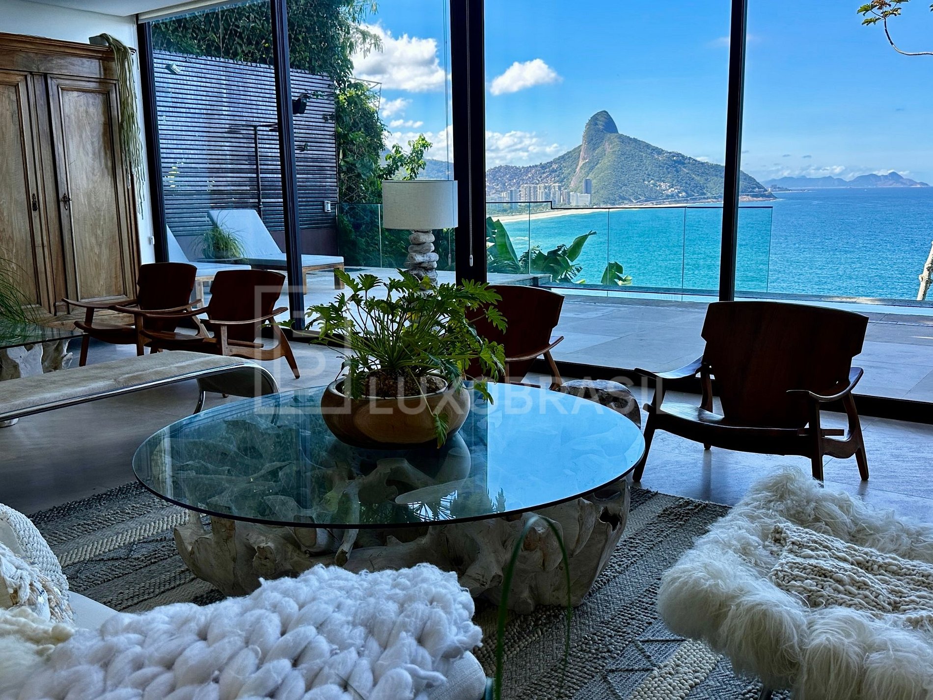 Esta impresionante villa es un verdadero refugio entre el mar y la selva, ubicada en el corazón de Joá — uno de los barrios más exclusivos de Río de Janeiro.