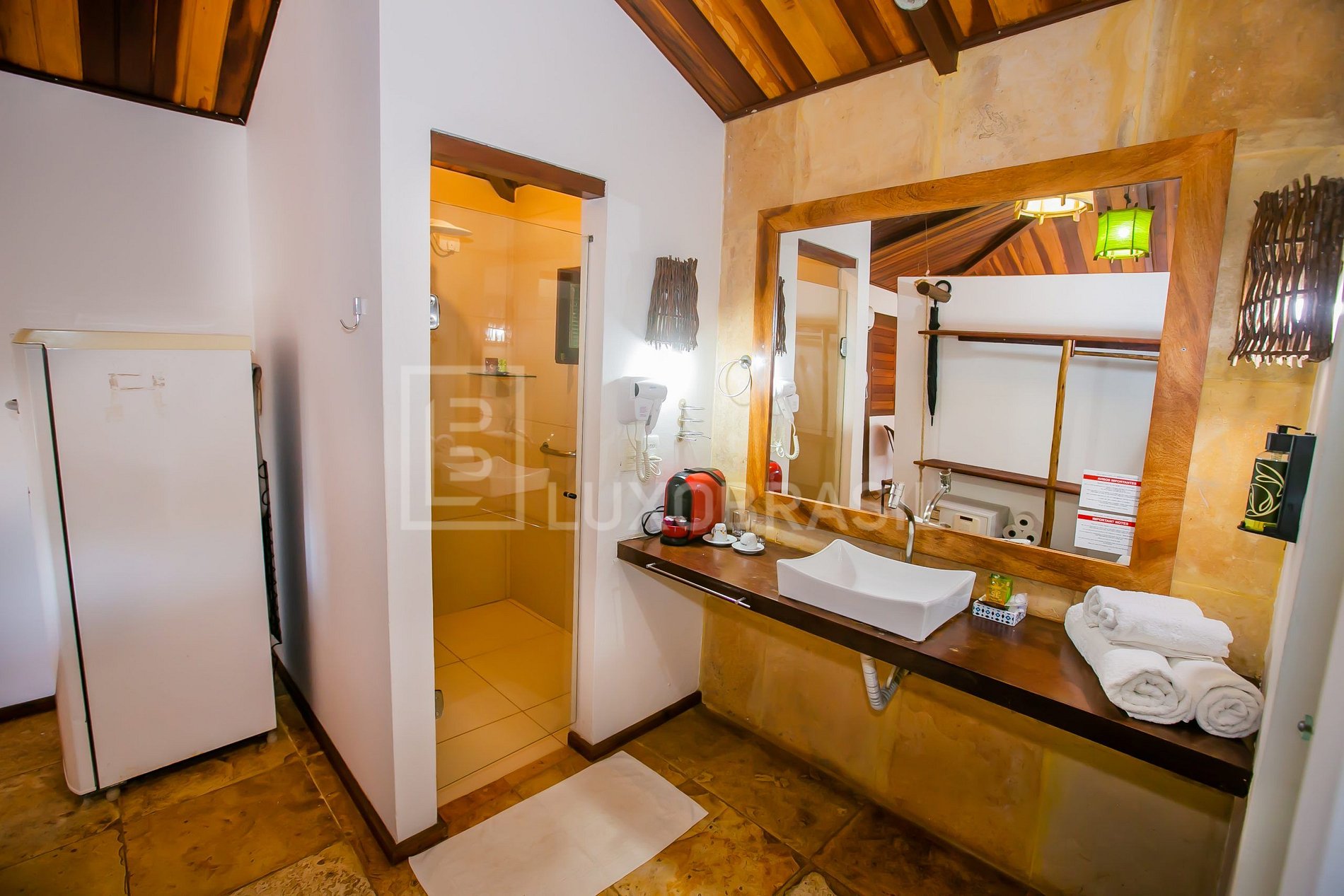 Cama king size, Excelente desayuno, Ventanas con mosquiteras, Baño privado con ducha y WC en habitaciones separadas; Armario; Aire acondicionado Split; Minibar; Caja fuerte; Secador de pelo; Máquina de café espresso; Balcón cubierto con zona de estar; Wi-Fi gratuito; Intercomunicador; Servicio de habitaciones;