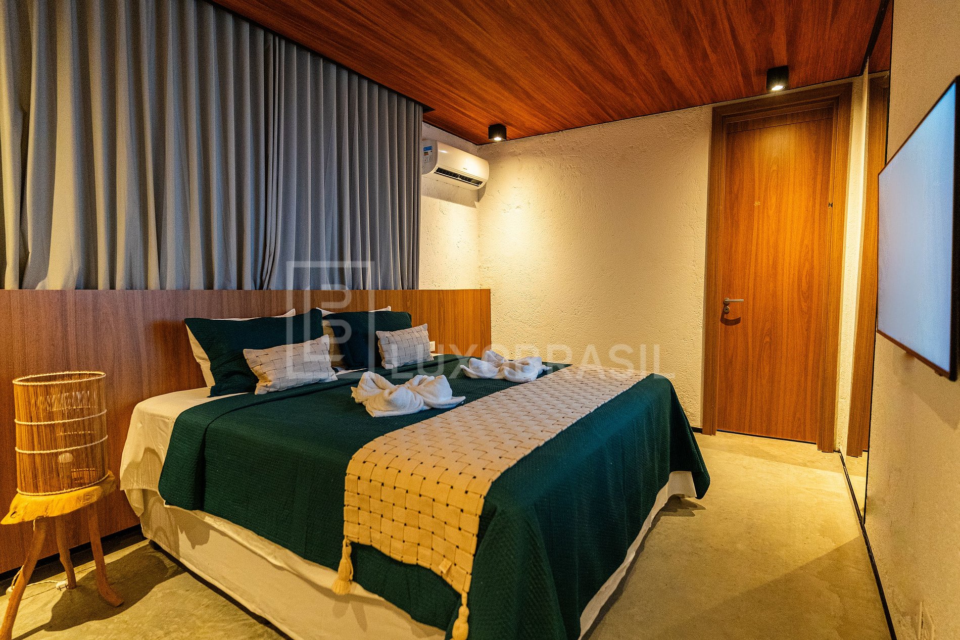 Todas as suítes são equipadas com ar-condicionado, Smart TV, cofre e frigobar.