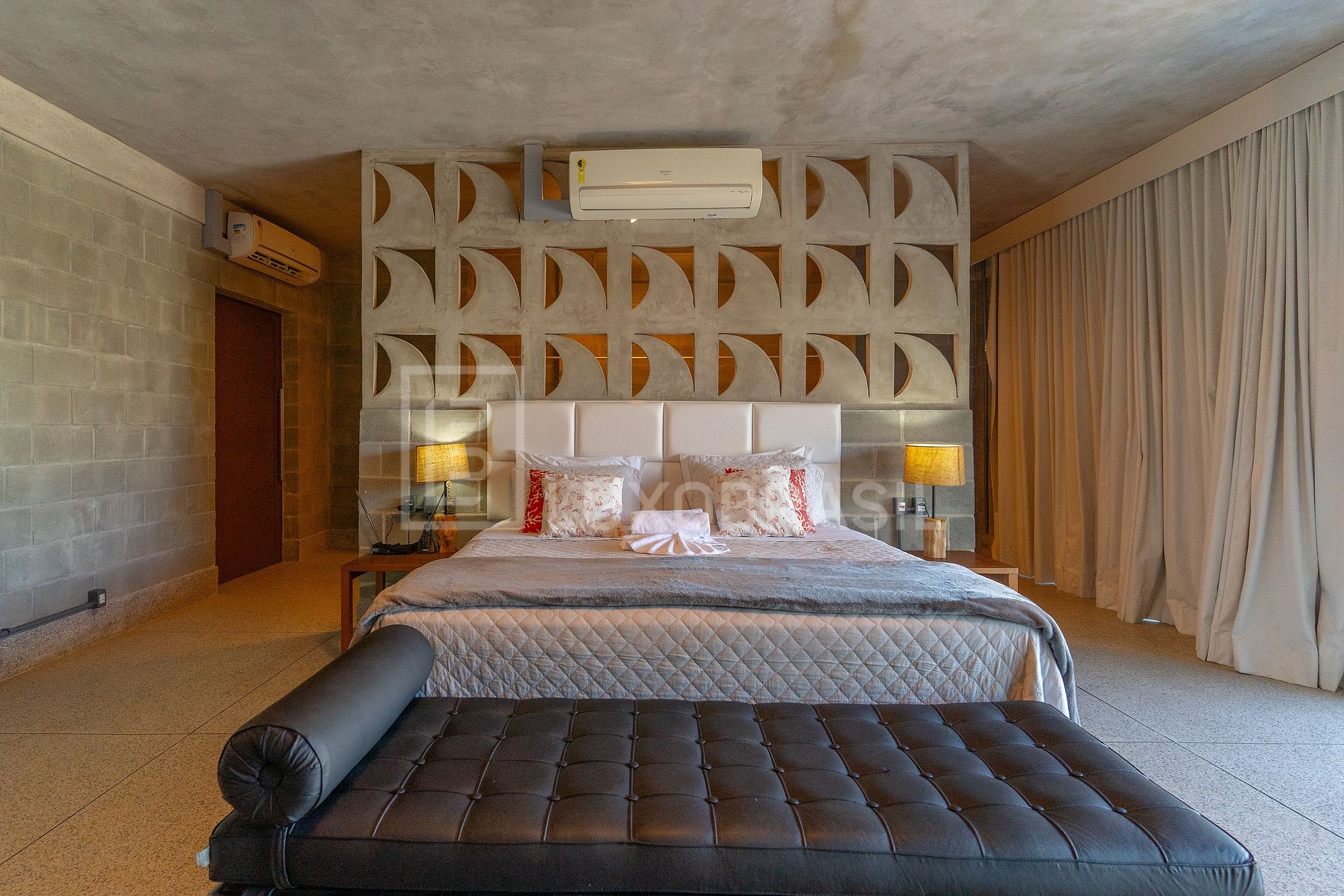 A mansão, localizada no Condomínio Portogalo, oferece um ambiente sofisticado e aconchegante, com uma ampla sala de estar com adega e uma vista espetacular para o mar, além de uma elegante sala de jantar ideal para refeições em grande estilo. Ambas as salas contam com lavabo e ambientes integrados que proporcionam conforto e praticidade. A cozinha totalmente equipada é um convite à gastronomia, enquanto as 07 suítes, todas com camas king-size, ar-condicionado e TV, garantem o descanso perfeito para todos os hóspedes.