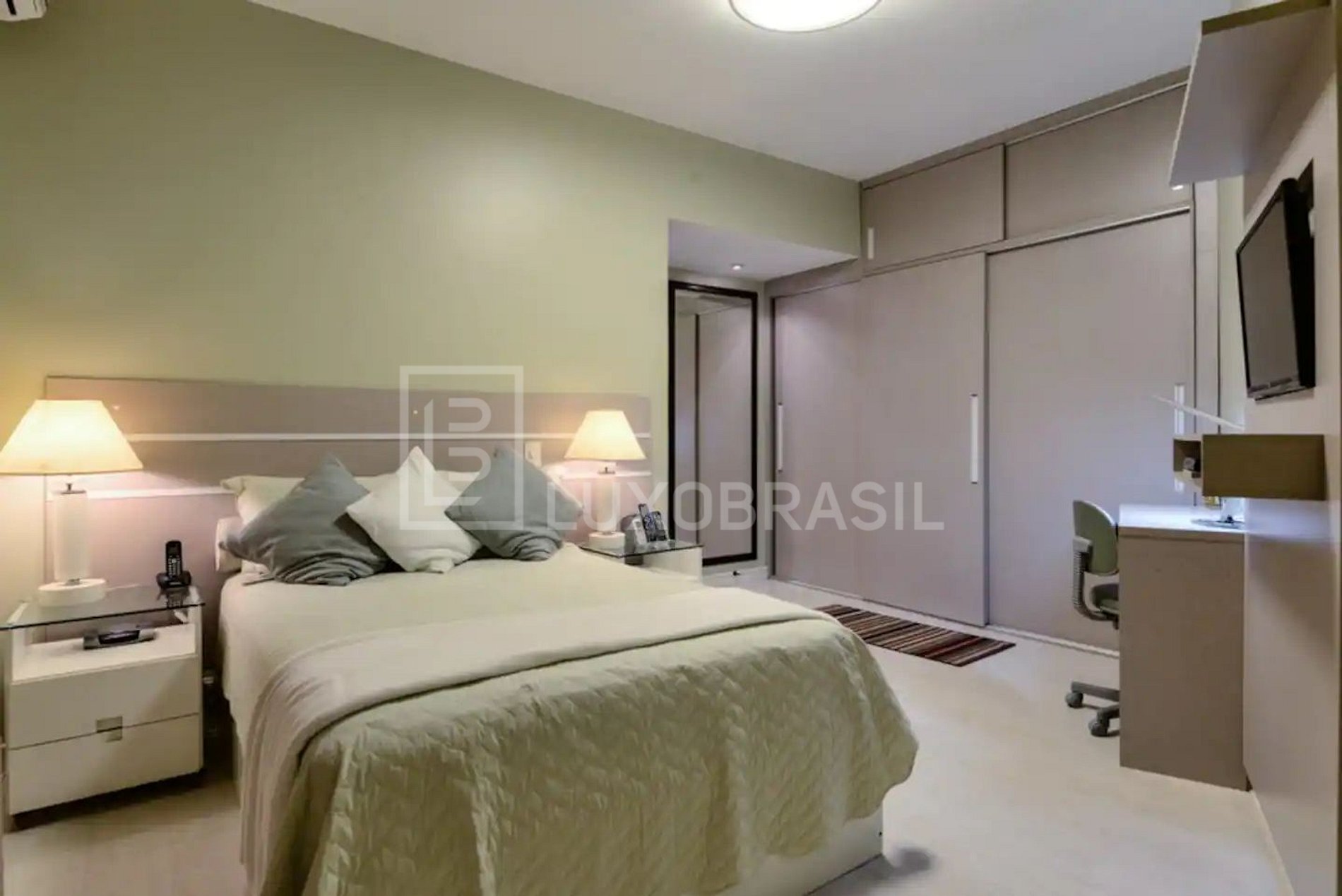 Quarto 1 - Cama de casal, ar condicionado split, escrivaninha, cortinas de blackout
