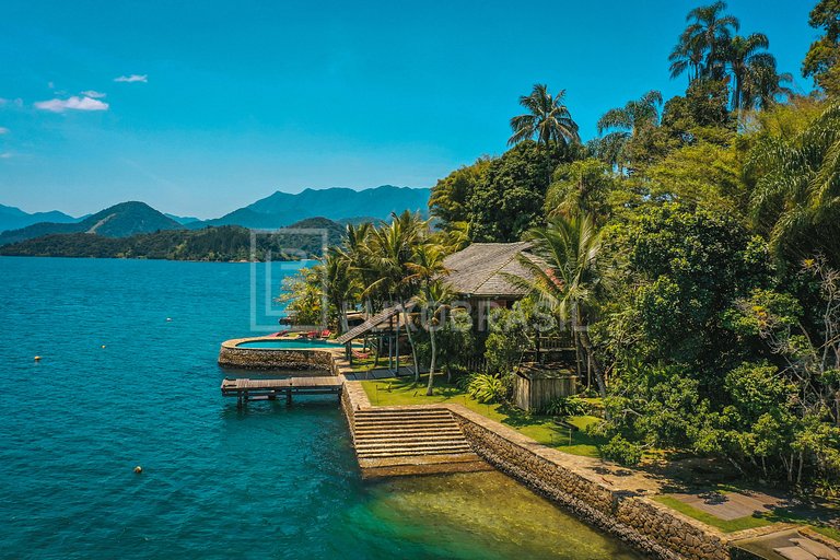 Maravillosa mansión situada en la isla de Cavaco, un pequeño paraíso en medio de la inmensidad del mar de Angra dos Reis. La mansión tiene 05 suites en la casa principal y 02 nuevas suites en el anexo de la casa. La suite principal tiene ofuro y sala de masajes. También cuenta con una gran sala de estar, sala de televisión con mesa de billar, comedor, cocina completa, chimenea exterior, piscina, sauna seca, sauna de vapor, gimnasio completo, piscina climatizada con carril de 25 metros para nadar, zona gourmet con barbacoa y horno de pizza. Además de un exclusivo helipuerto. Zona común del condominio con pista de tenis, campo de fútbol y parque infantil.