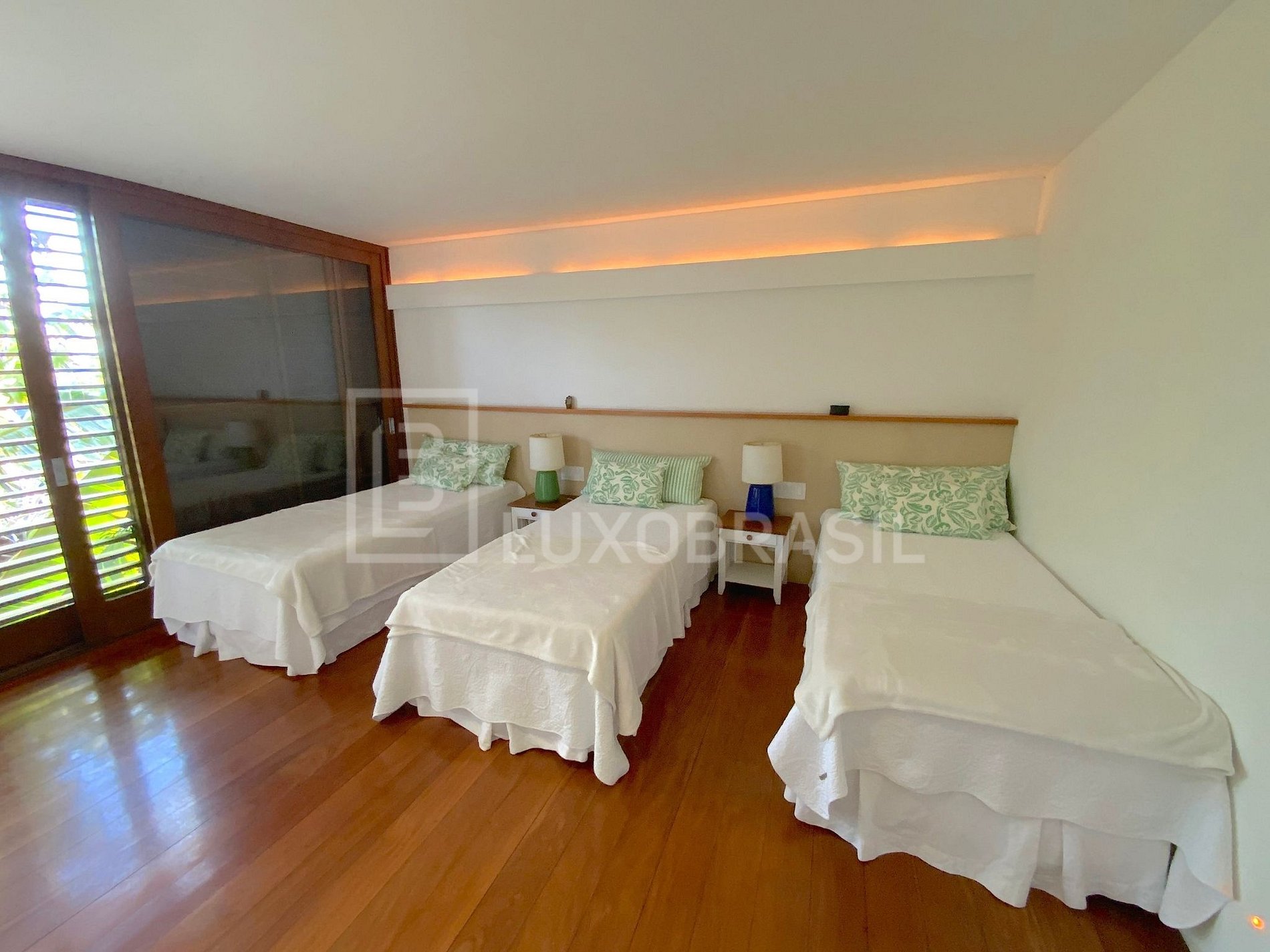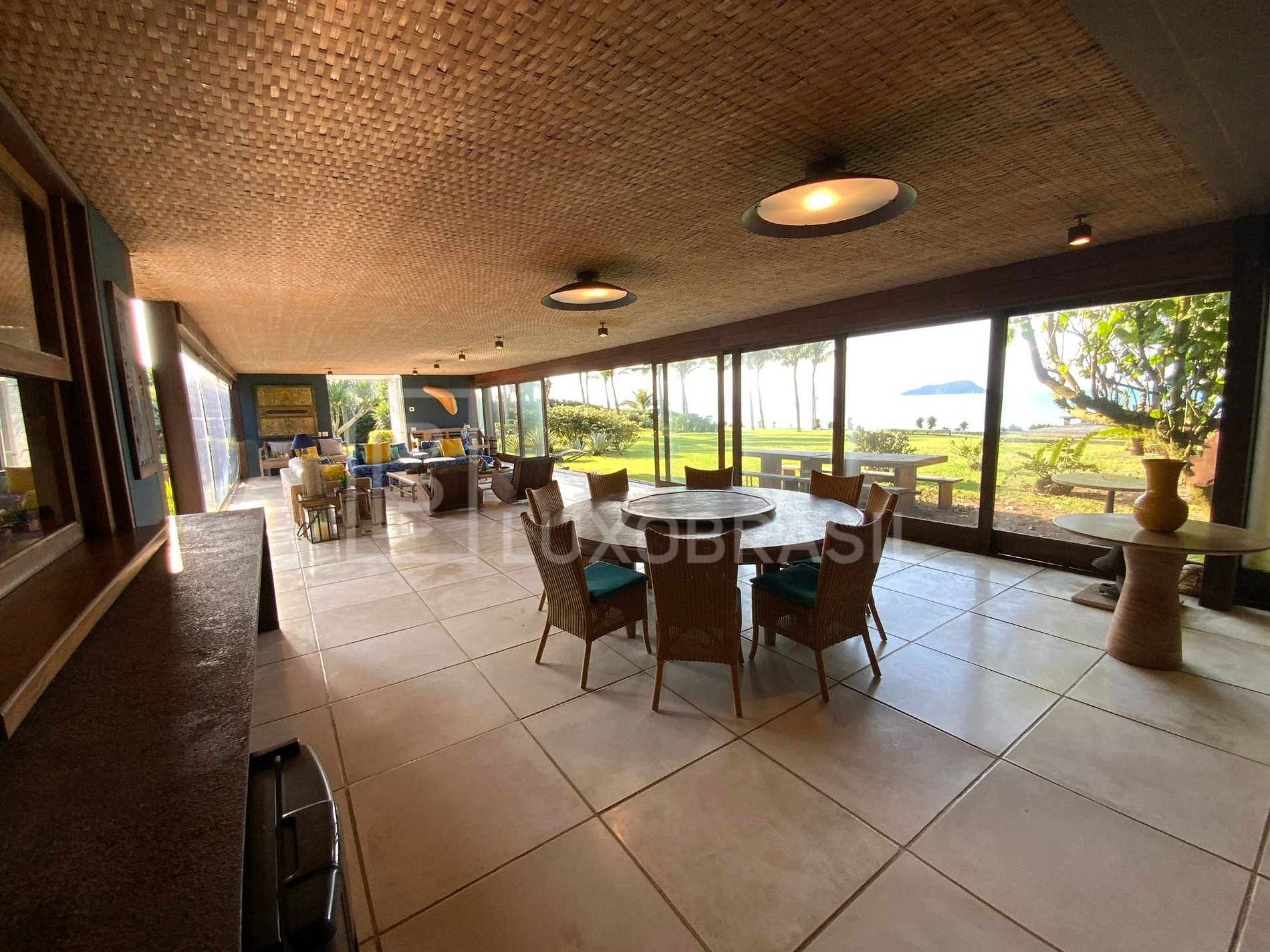 La casa ofrece 07 amplias suites, todas con aire acondicionado, 03 salas de estar, un comedor, una cocina completa y una oficina totalmente equipada con internet de alta velocidad.