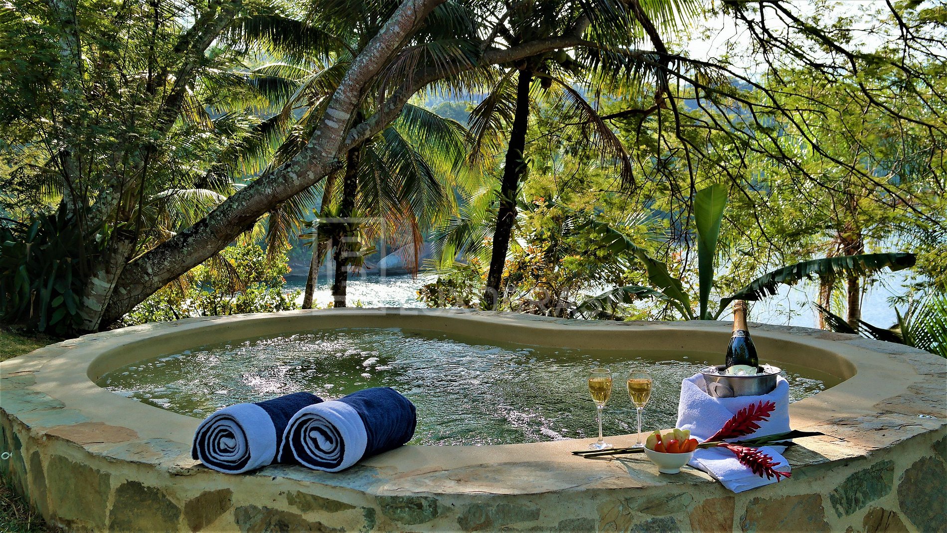 Esta increíble isla privada y exclusiva se encuentra a 7 km de la costa de Angra dos Reis, un municipio a 168 km de la ciudad de Río de Janeiro, situado en la Costa Verde, una región rodeada por la Mata Atlántica, con mar tranquilo y cristalino.