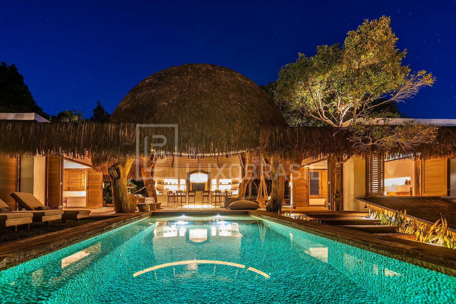 En el centro de esta Cruz está la cocina, el corazón de la casa, donde tiene lugar toda la alquimia. La cocina totalmente equipada con una hermosa isla central, acompañada de una amplia y espectacular mesa para disfrutar de una excelente comida en familia. Alrededor de la cocina emergen tres suites y una piscina con tumbonas: un ambiente completamente inusual que brinda inspiración y convivencia armoniosa a sus huéspedes. Si te gusta cocinar y estar rodeado de amigos y familiares, ¡este es tu sitio!