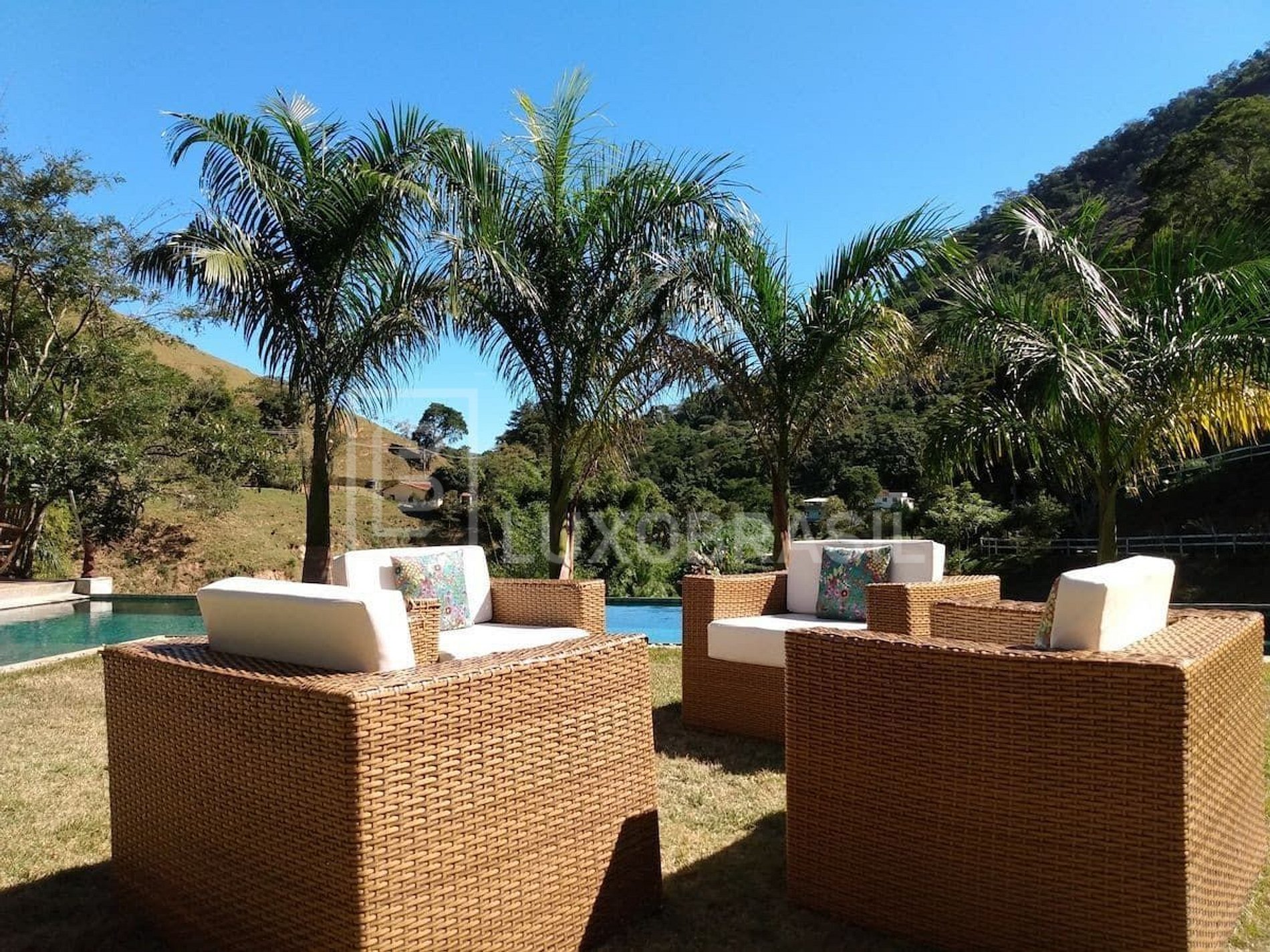 Maravilloso rancho rodeado de vegetación por todos lados, con arroyo, caballos, 03 dálmatas, además de guacamayos y loros. Con una superficie de 80mil m², el huésped es libre de pasear o simplemente observar el verde entorno. El establo dispone de cocina de leña, horno de pizza, barbacoa, piscina de 13 metros de largo hecha con piedras balinesas y borde infinito, donde los huéspedes pueden hacer ejercicio o relajarse, además de mucho espacio. La granja también organiza excursiones por los alrededores, ya que en la región hay viñedos, alambiques, queserías, mermeladas y jaleas.