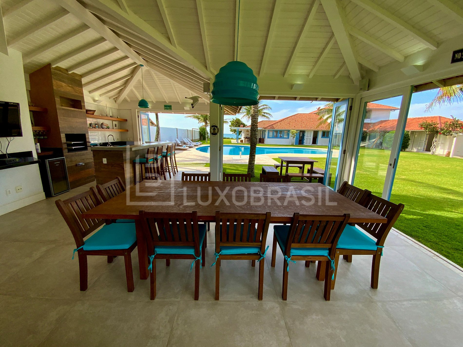A área de lazer é um verdadeiro paraíso, com um lounge à beira-mar, varanda, piscina, e espaço gourmet com churrasqueira e forno à lenha, e lavabo. Para os entusiastas do esporte, há também uma quadra de tênis privativa.