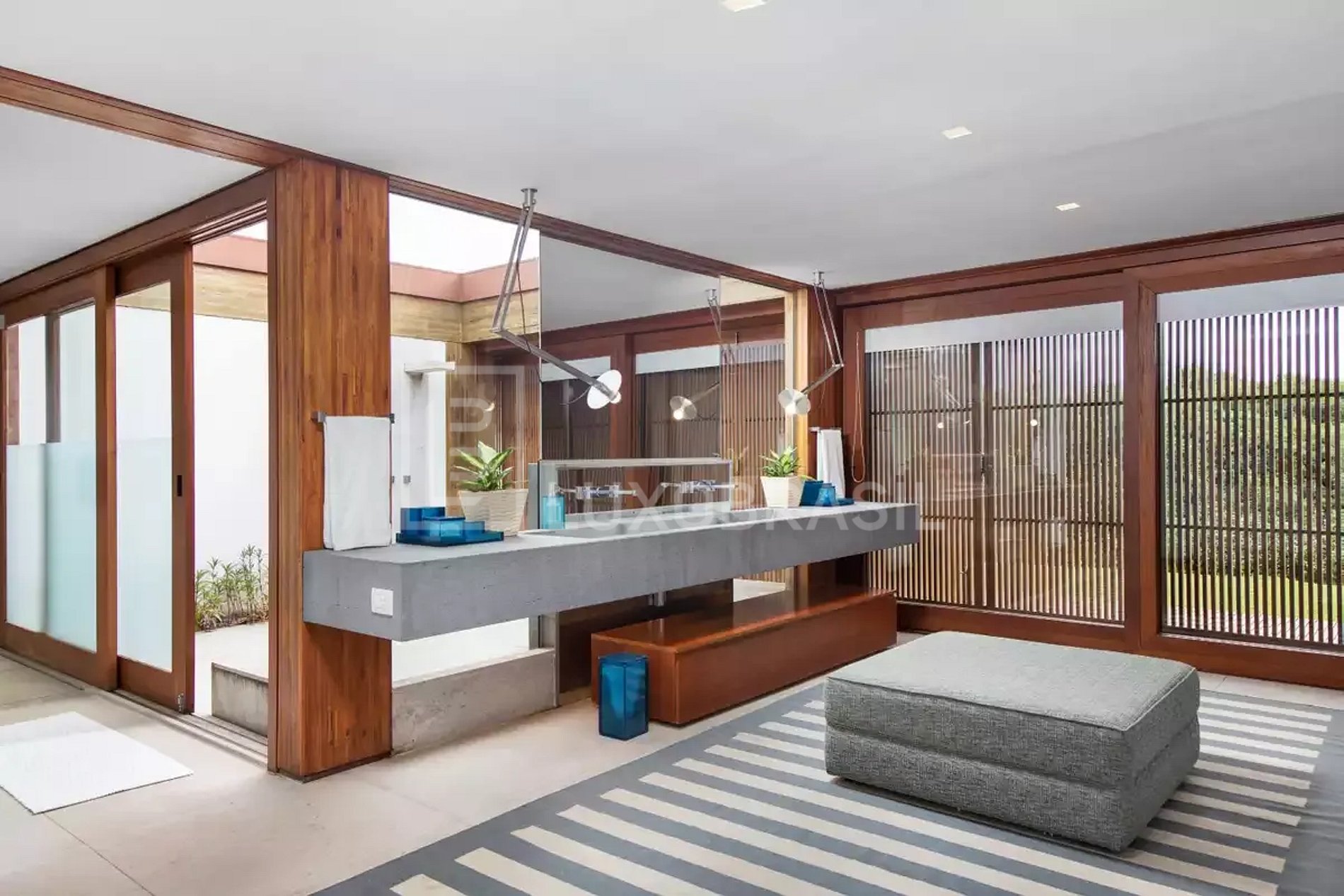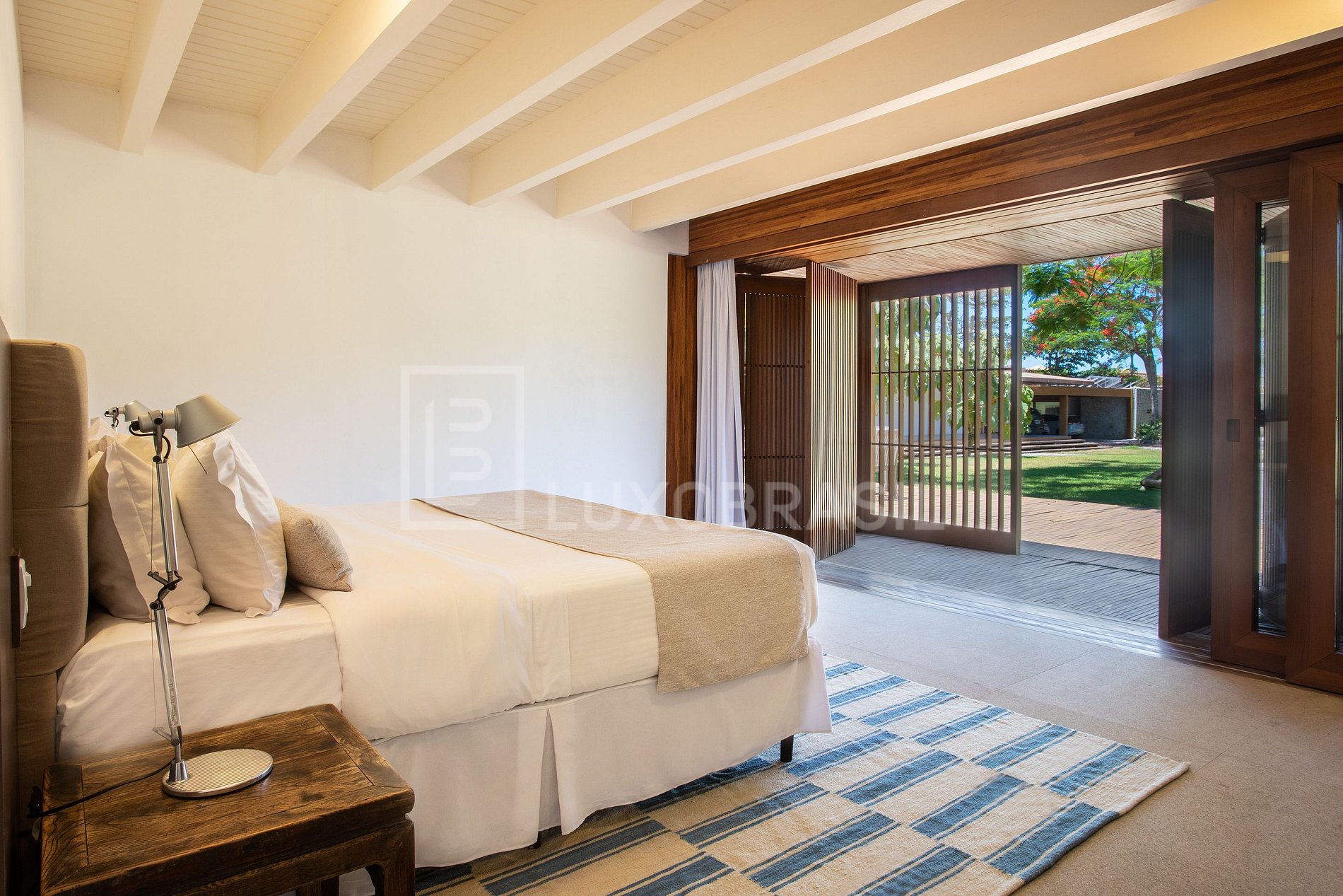 Lujosa mansión frente a la playa de Manguinhos con una superficie total de 28.000 m², su arquitectura contemporánea ofrece a sus huéspedes la oportunidad de vivir una experiencia única junto a las obras de arte del renombrado maestro Vik Muniz. Los jardines de la propiedad son un capítulo aparte, creados por el sucesor de Burle Marx y uno de los paisajistas más importantes del país, Fernando Chacel, están impregnados de plantas de otras partes del mundo y hermosos campos verdes.