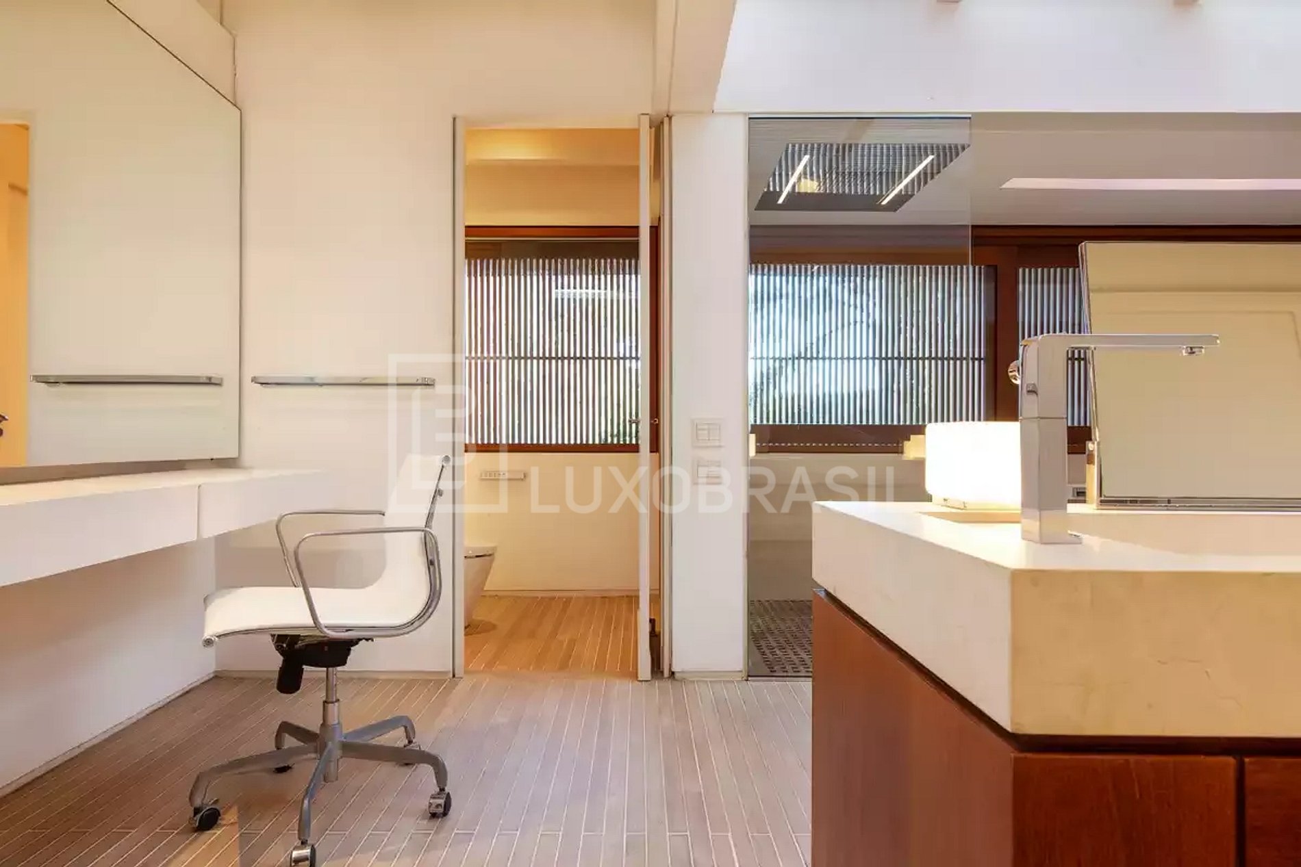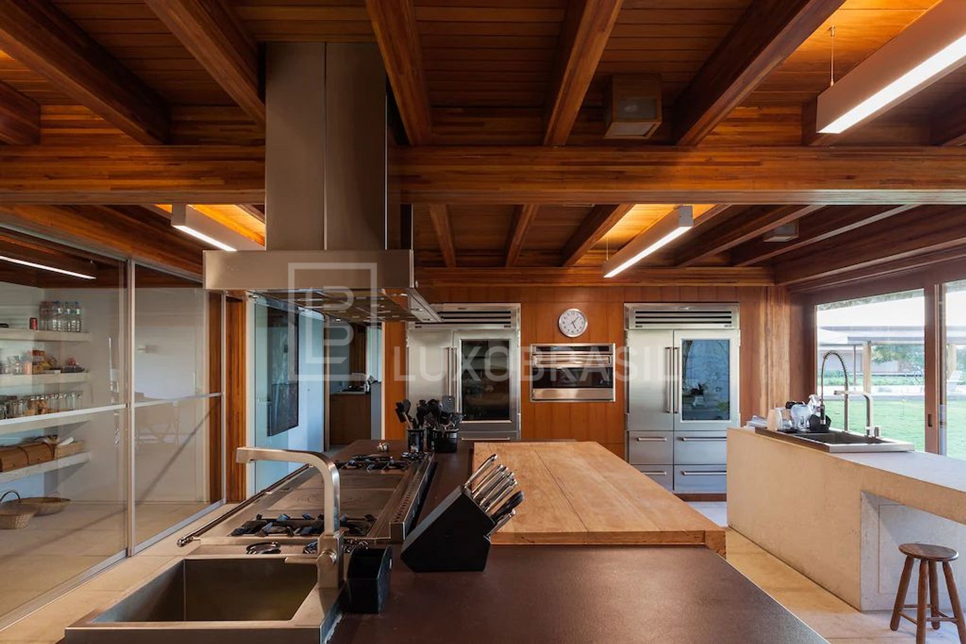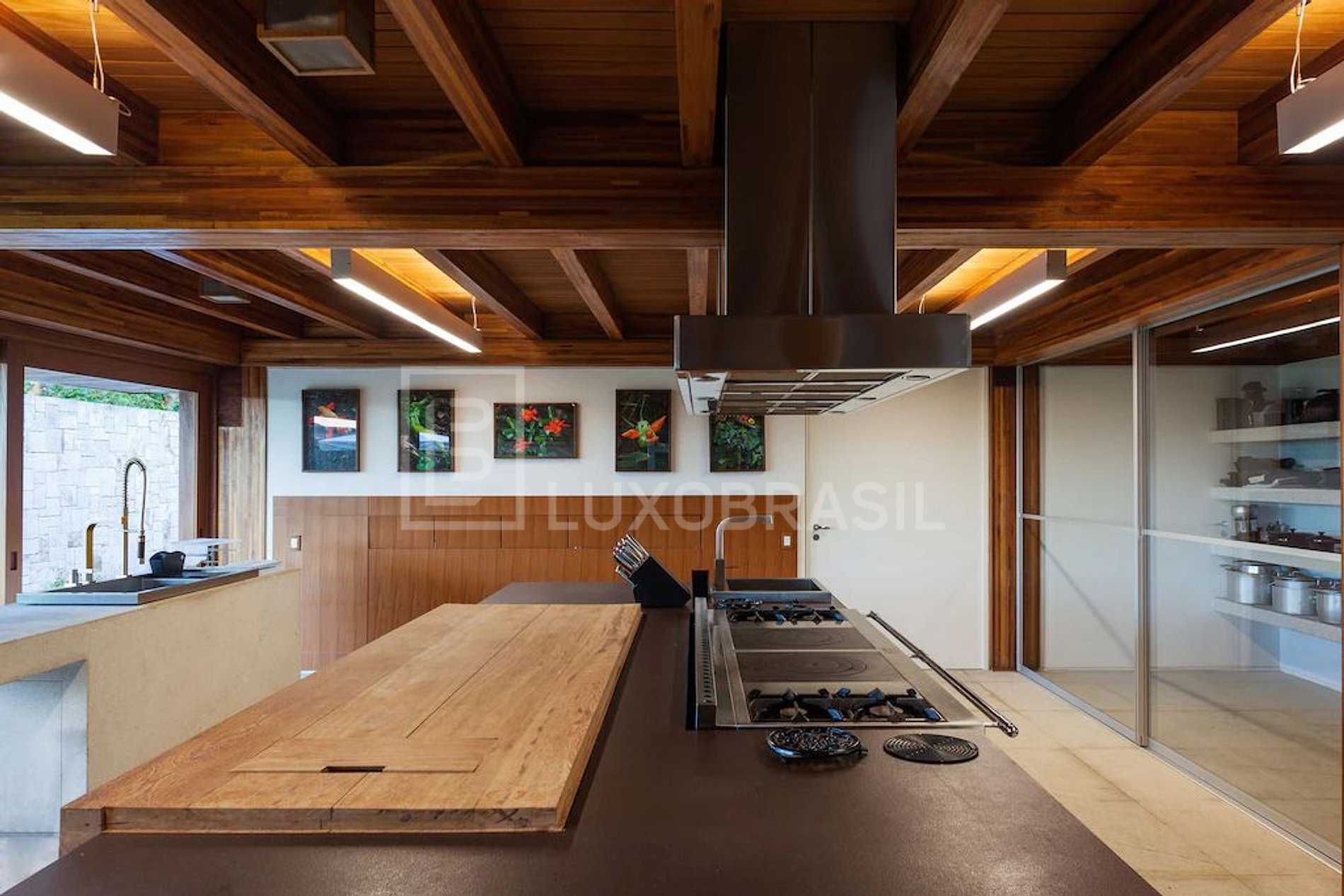 Con una increíble piscina interior-exterior climatizada, sala de vapor, spa idealizado con espacio para el equilibrio y la relajación, cubierta exterior con vistas al mar, pista de tenis, sendero a través de un tramo de bosque autóctono dentro de la propiedad, aparcamiento y helipuerto.