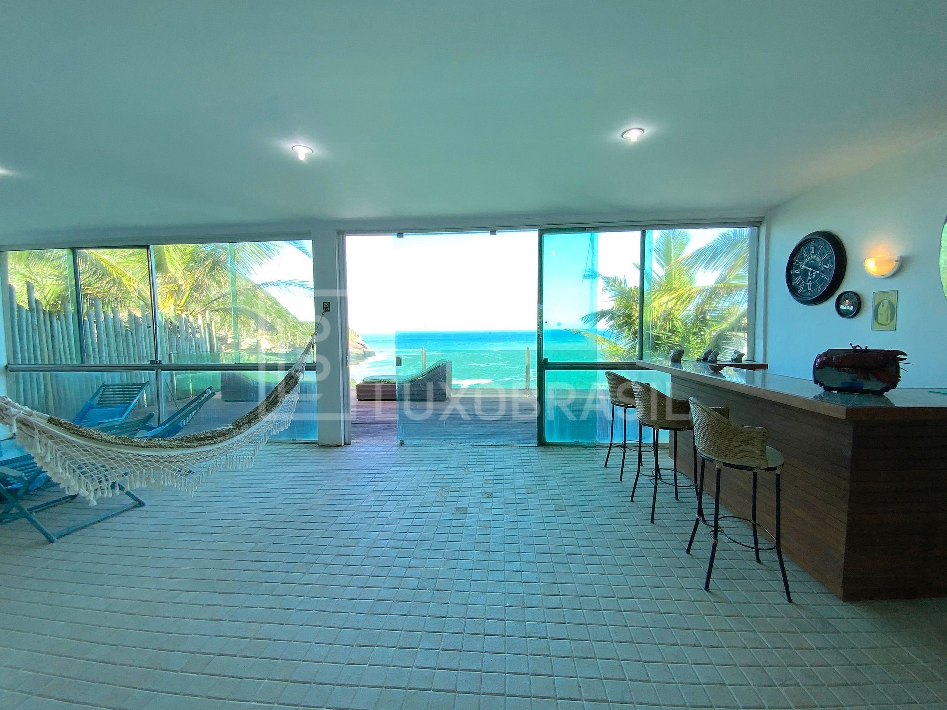 Esta espectacular villa, diseñada por el arquitecto Raja Gabaglia, se encuentra en una de las mejores playas de Búzios, Praia da Ferradura. Con una superficie de 2.000m² situado en una parcela de 3.0000m², con mucha luz natural, transmite un ambiente relajante que le ayuda a sentirse como en casa inmediatamente, la casa le proporcionará la mejor experiencia posible y todo el confort que usted y su familia merecen, con vistas privilegiadas y total privacidad.