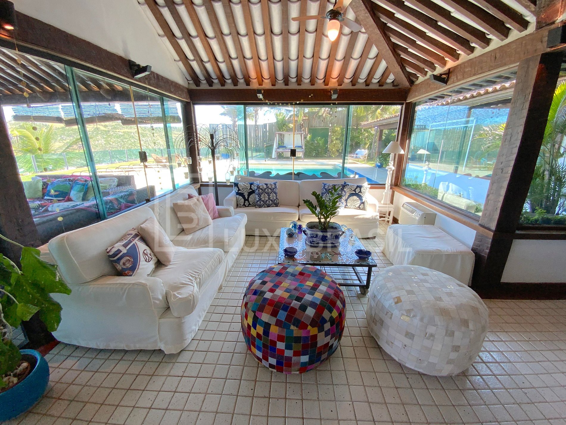 Esta espectacular villa, diseñada por el arquitecto Raja Gabaglia, se encuentra en una de las mejores playas de Búzios, Praia da Ferradura. Con una superficie de 2.000m² situado en una parcela de 3.0000m², con mucha luz natural, transmite un ambiente relajante que le ayuda a sentirse como en casa inmediatamente, la casa le proporcionará la mejor experiencia posible y todo el confort que usted y su familia merecen, con vistas privilegiadas y total privacidad.