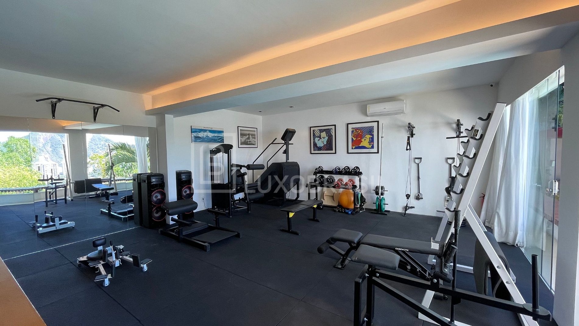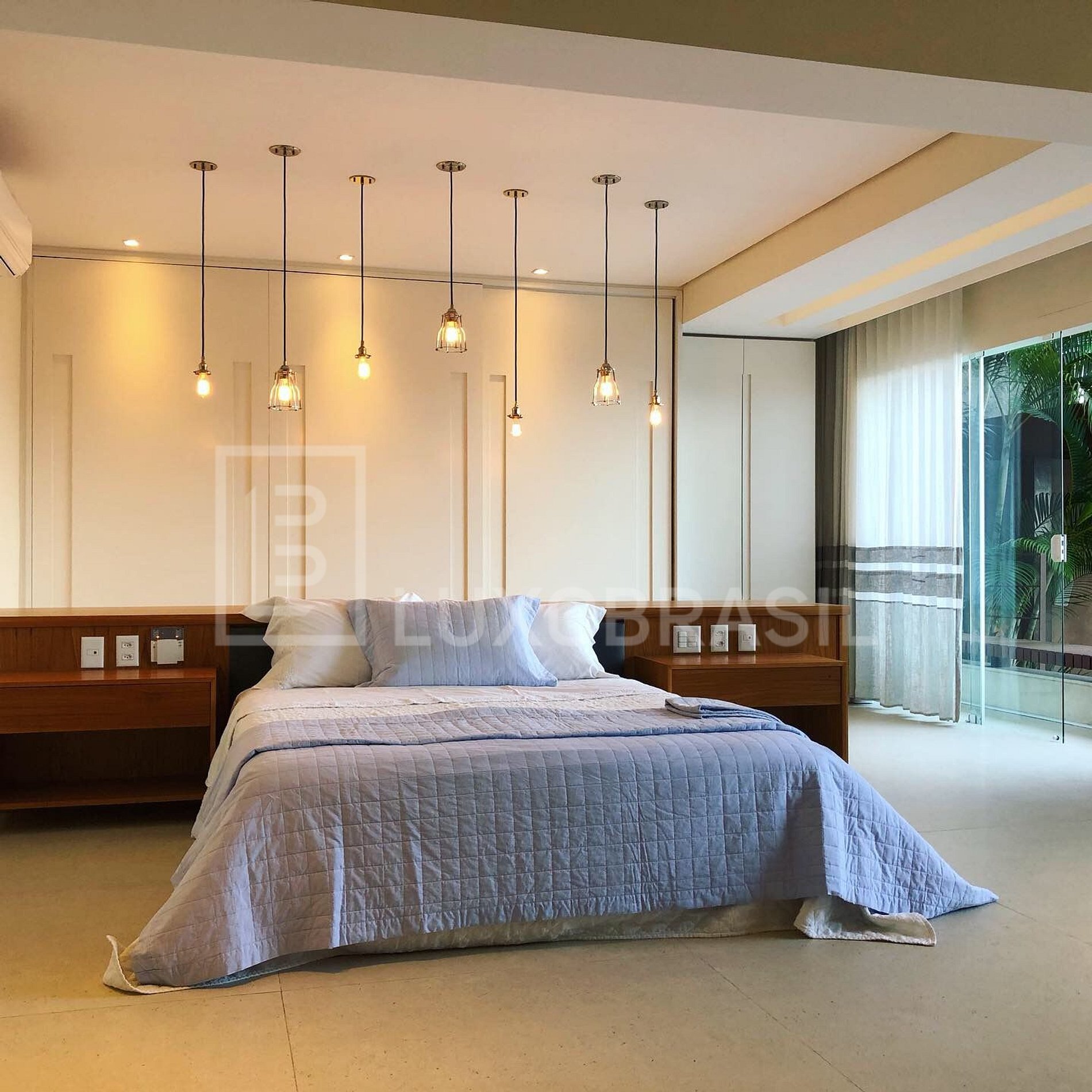 Tiene circuito de vigilancia, sonido y cámaras y está todo automatizado, y puede ser controlado por I-phone o tablet. El garaje tiene 04 plazas de aparcamiento cubierto. También tiene casa independiente para conserje y dependencia completa.