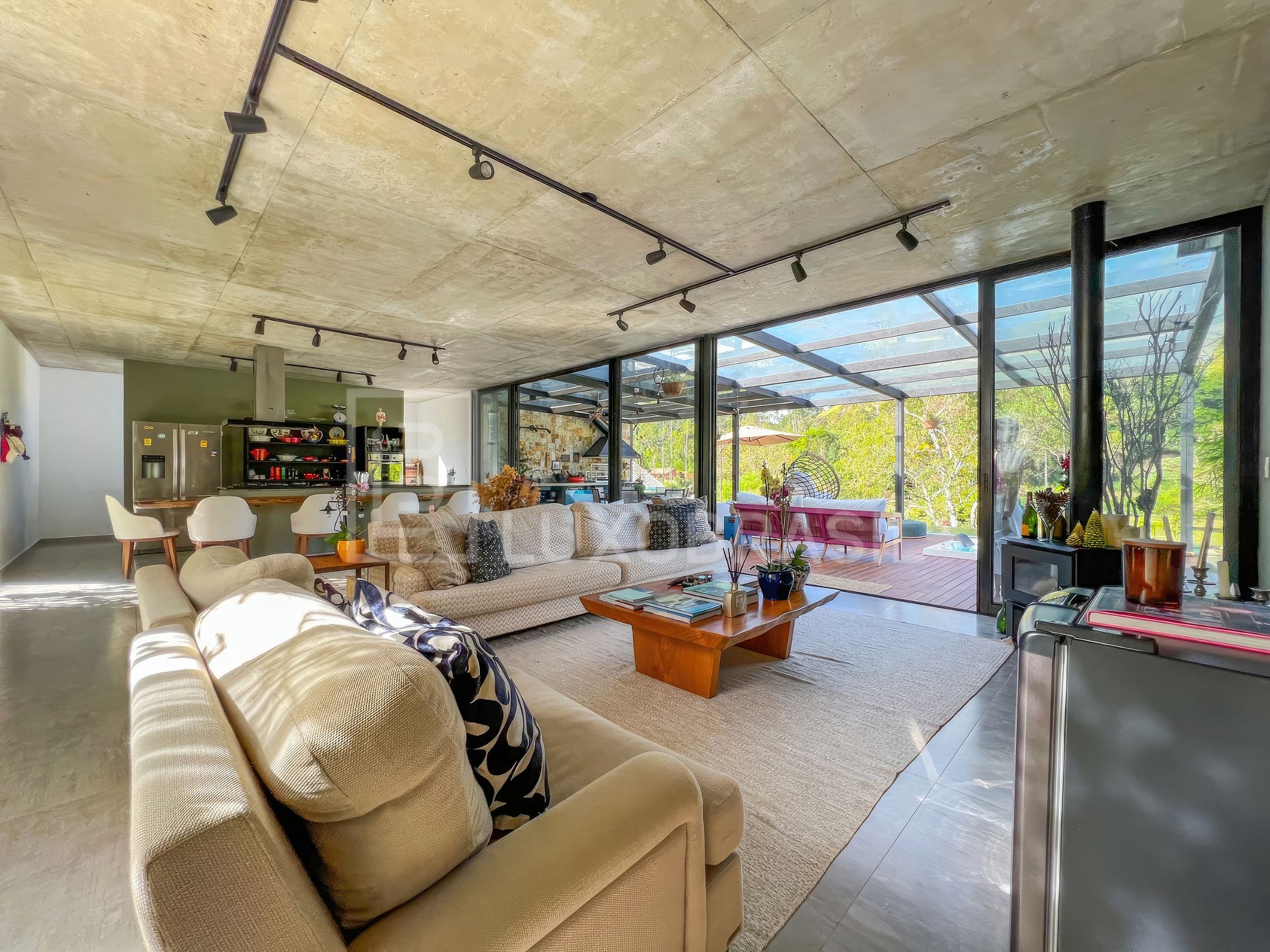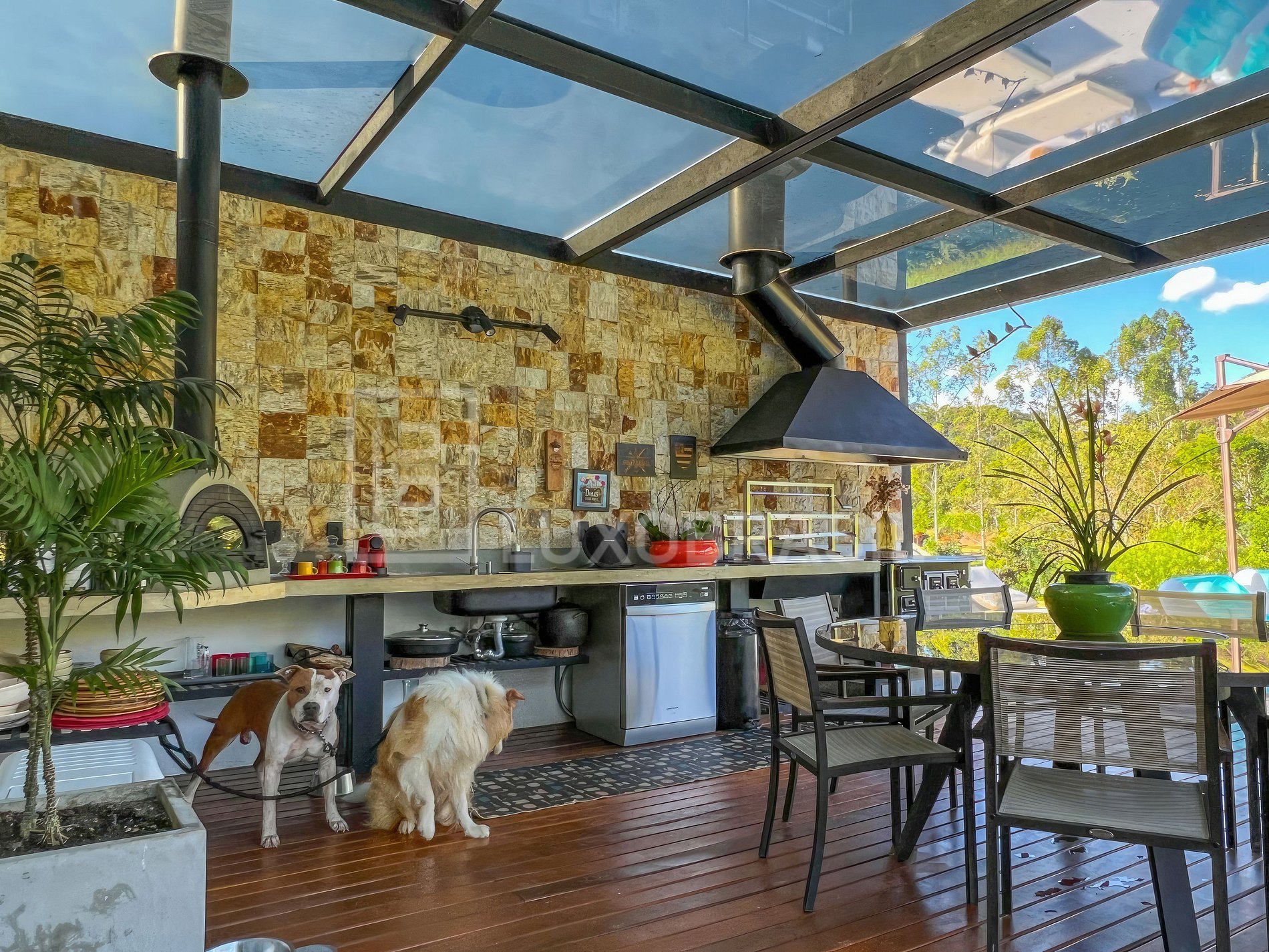 La propiedad tiene un gran salón con chimenea, integrado en una cocina moderna con vitrocerámica, horno eléctrico, lavavajillas, máquina Nespresso, cocina de leña, horno de pizza y una hermosa vista.