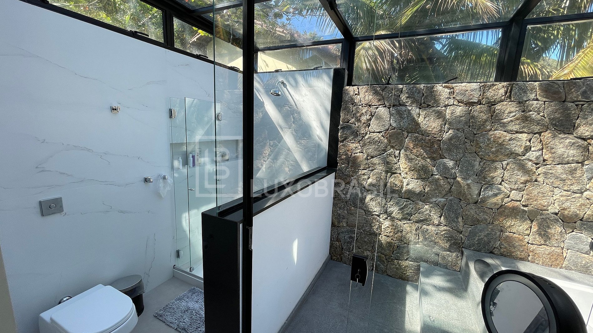 LUXOBRASIL vende esta lujosa mansión ubicada en el prestigioso barrio de Joá, situado entre la elegante Zona Sur y la moderna Barra da Tijuca. Con una vista panorámica impresionante del océano, la propiedad ofrece un total de 5 suites, dos de ellas orientadas al mar y con baños modernos y elegantes.