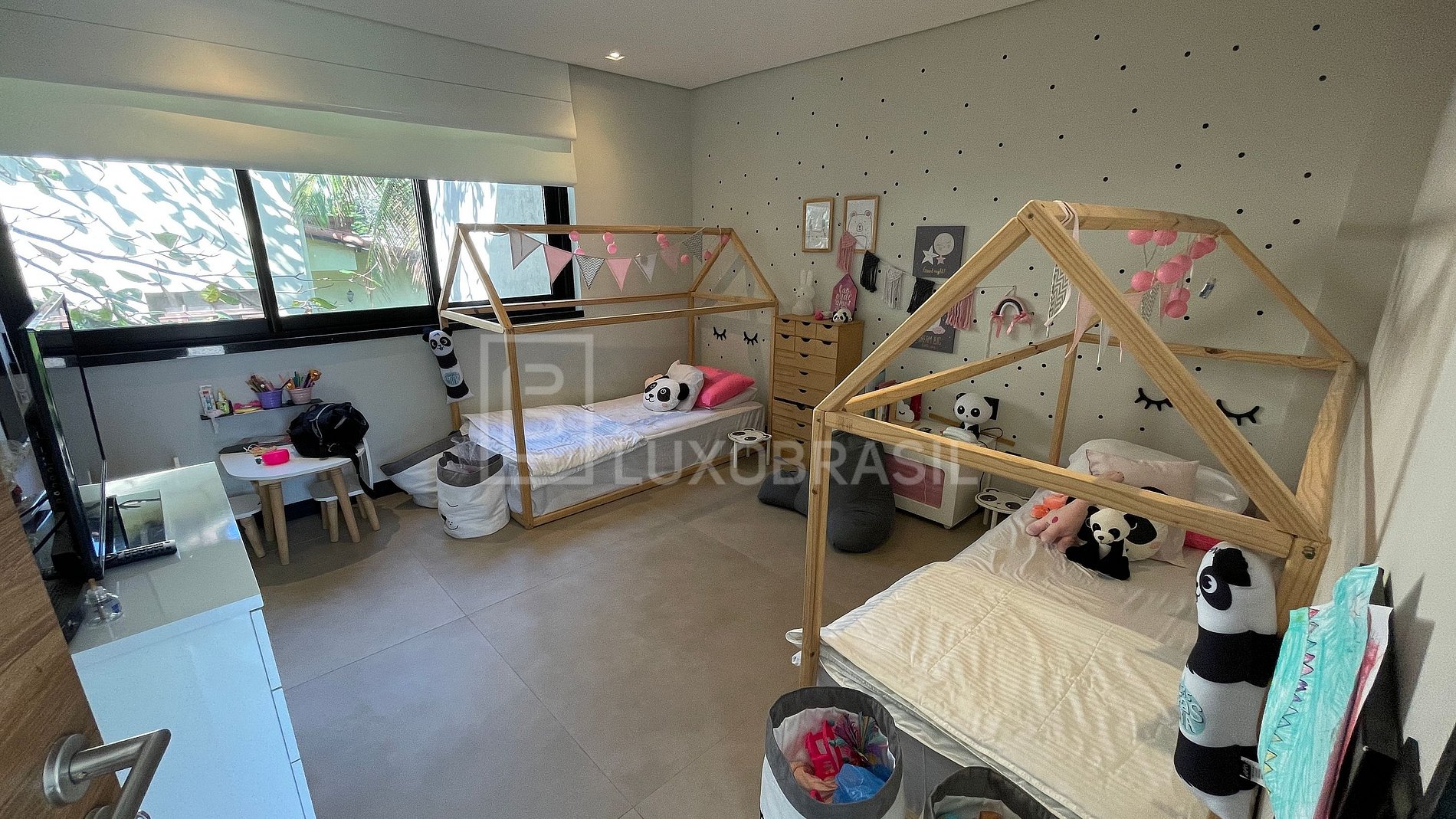La residencia cuenta además con sauna a vapor, una impresionante piscina con borde infinito integrada a una amplia área gourmet, balcón y un hermoso jardín en altura. En su interior espacioso y luminoso, se destacan la sala de estar, la sala de TV, el comedor y una cocina completamente equipada, perfecta para cualquier ocasión.