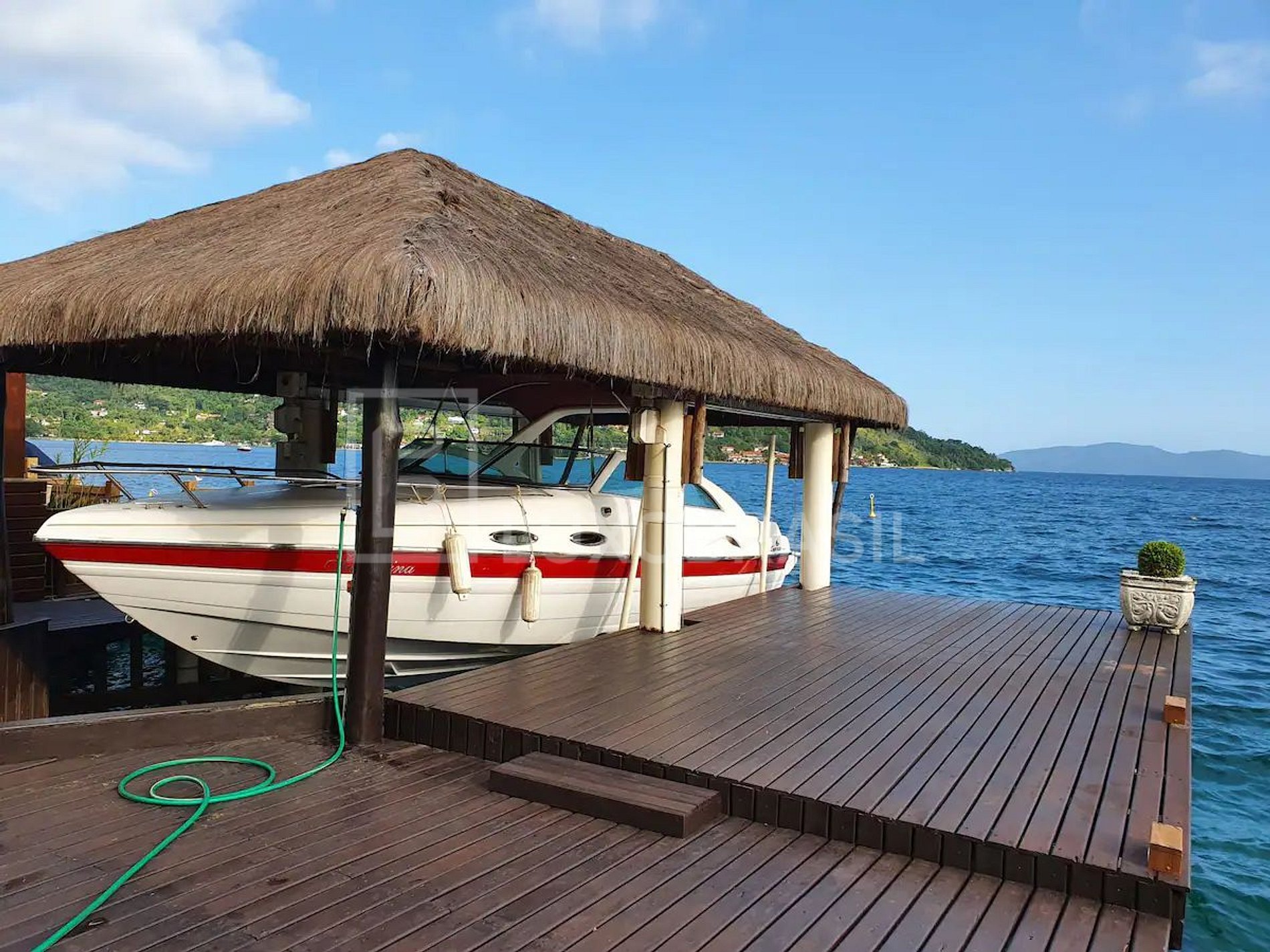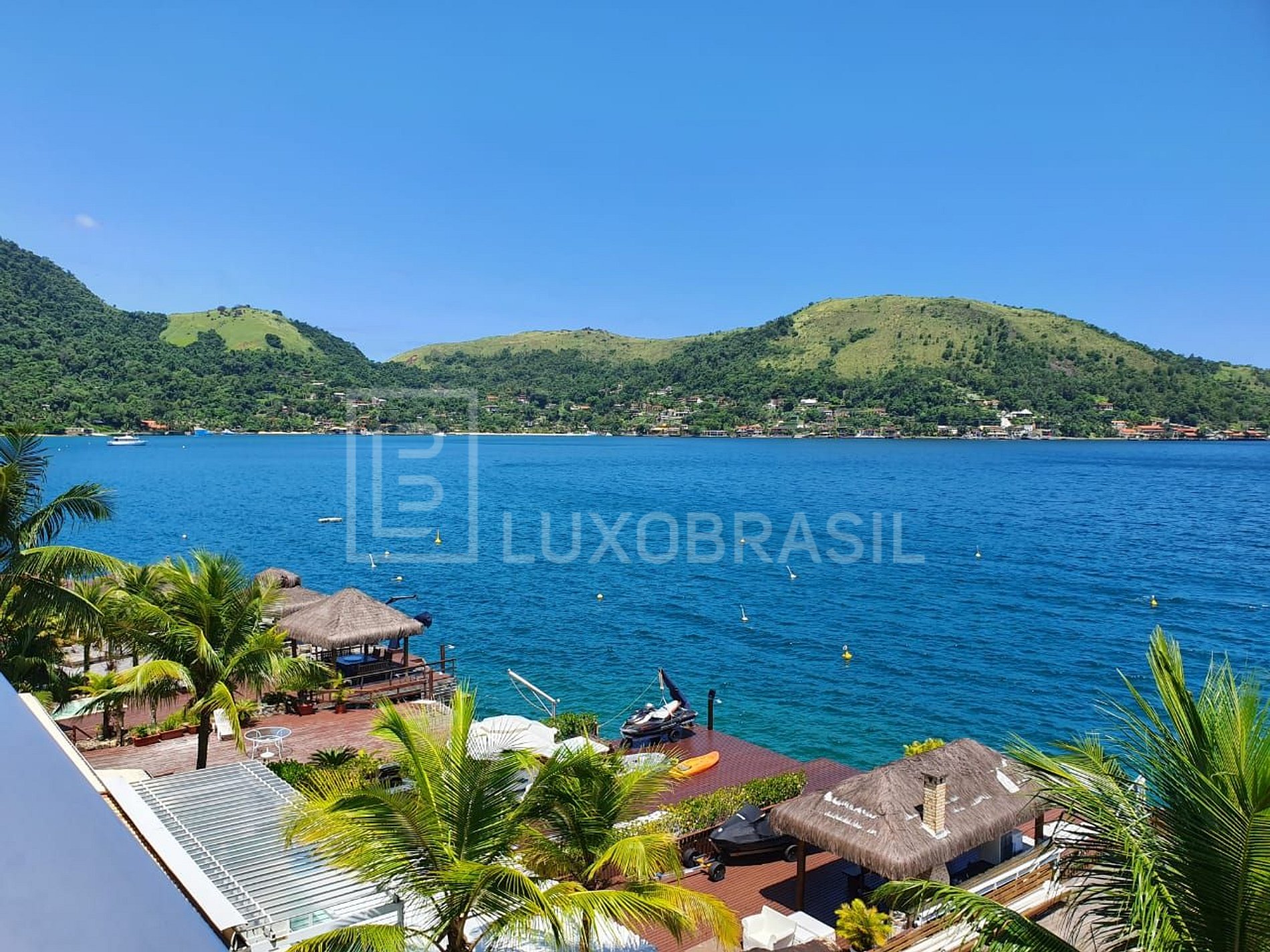 Su área exterior tiene una hermosa vista, acceso al mar, poitas y muelle para amarre de embarcaciones. Também possui piscina, deck, sauna e um espaço gourmet com barbacoa.