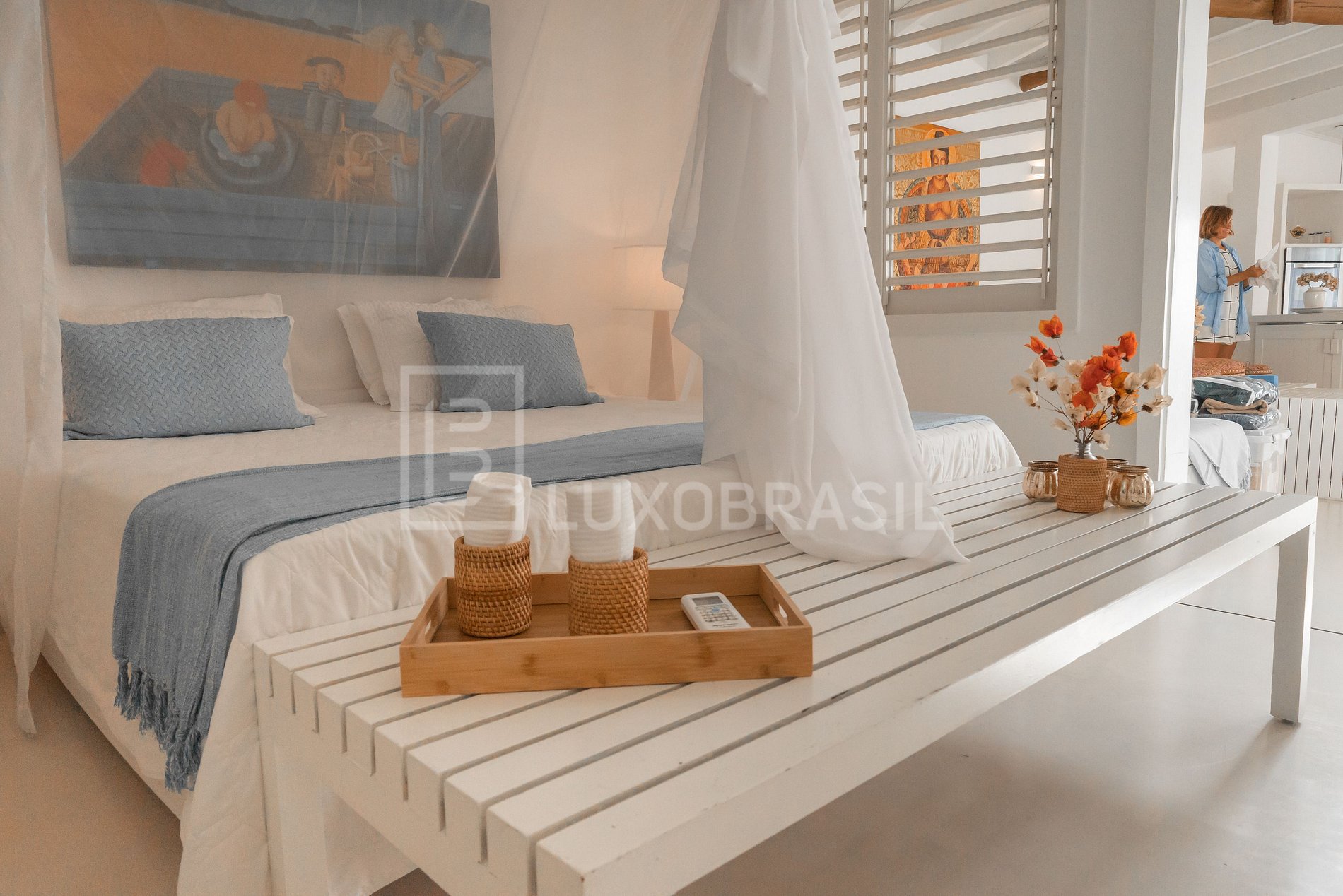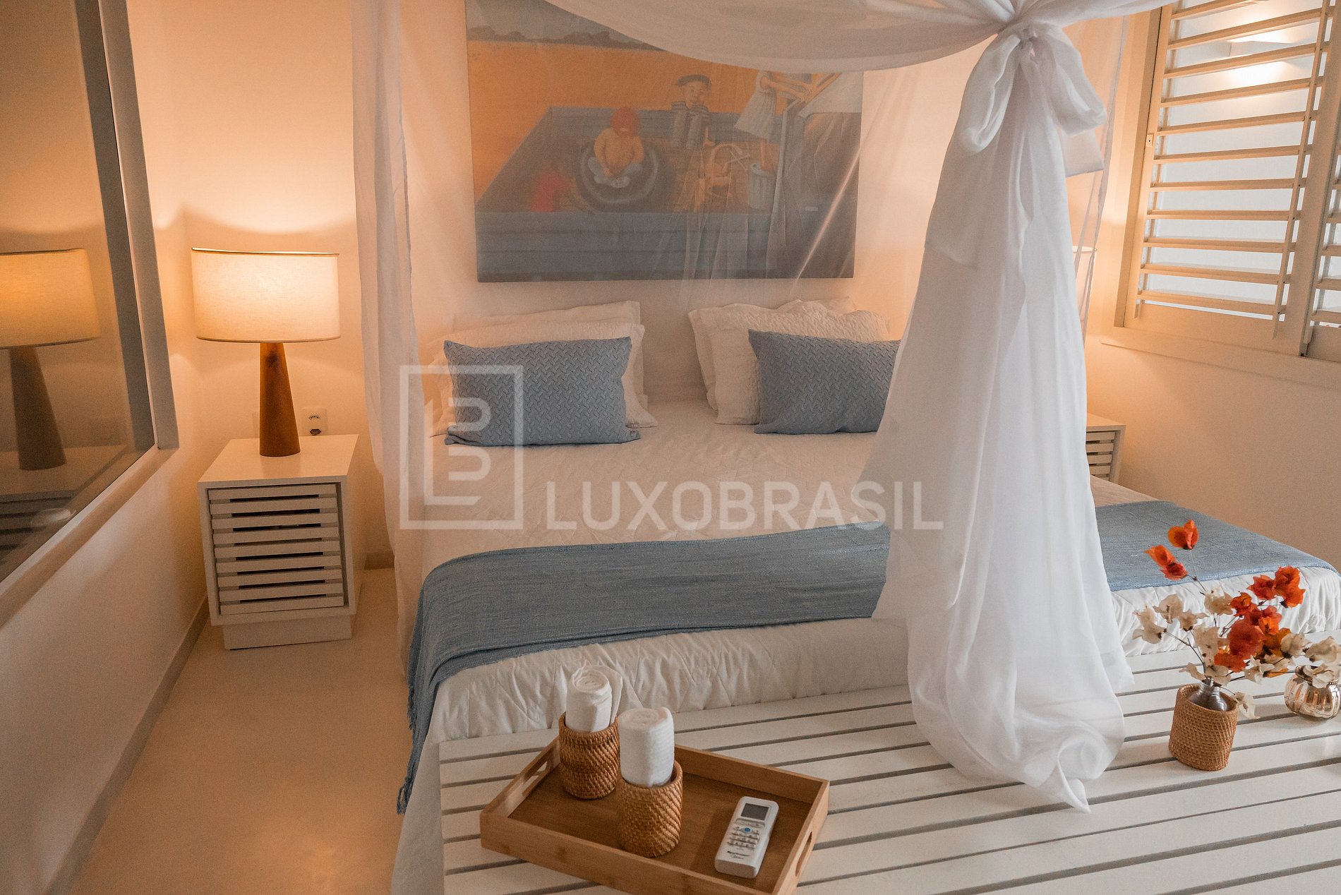 La casa de vacaciones cuenta con dos amplias suites, un gran salón con cocina integrada equipada con electrodomésticos modernos. La habitación tiene aire acondicionado, vistas al océano Atlántico y un agradable balcón. El condominio ofrece una piscina infinita, una zona zen con sauna, ofuro y cabina de masajes. La playa semidesierta tiene acceso directo desde el condominio y ofrece aguas cristalinas, un puesto de cocos y marisco para degustar.