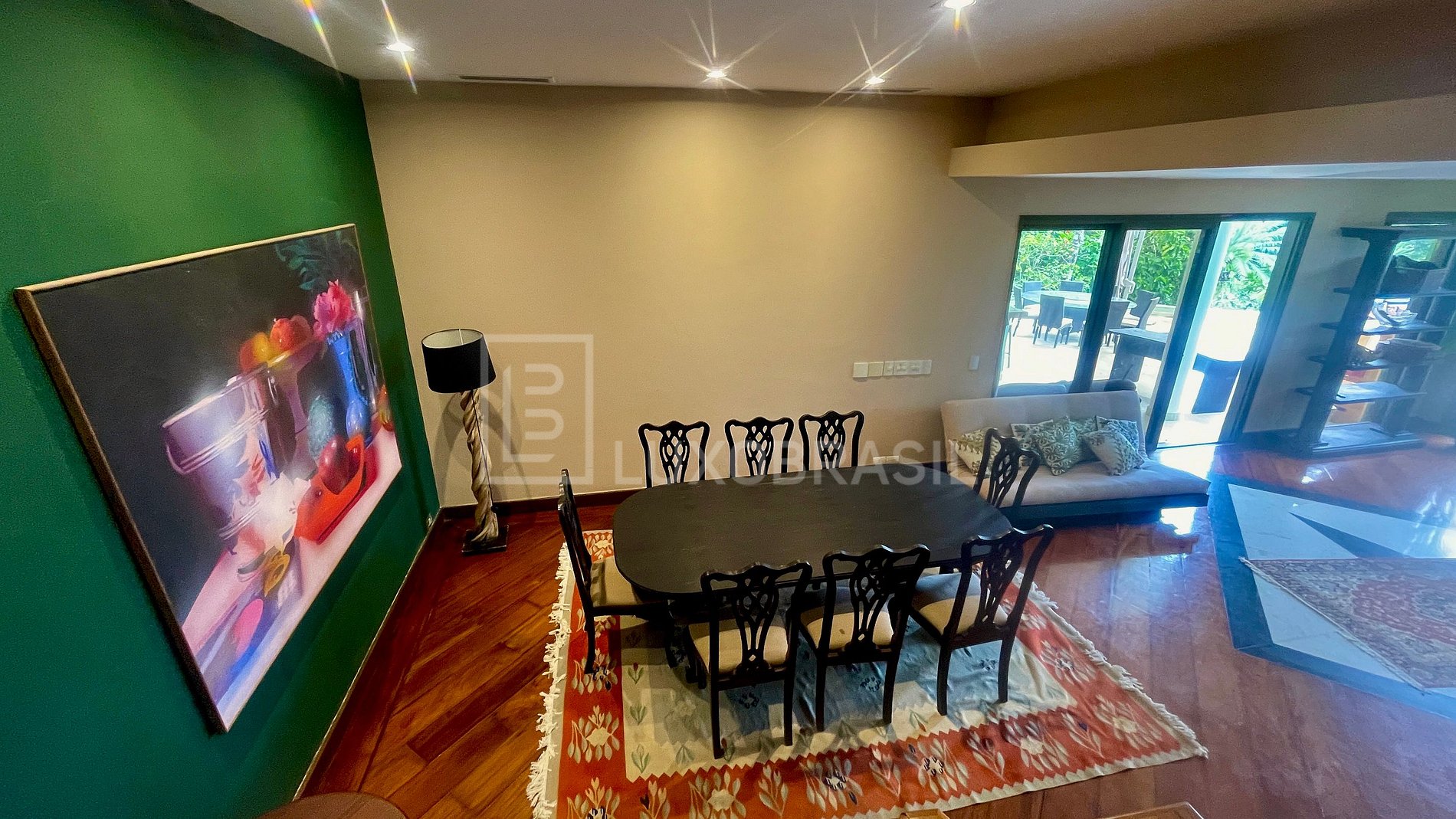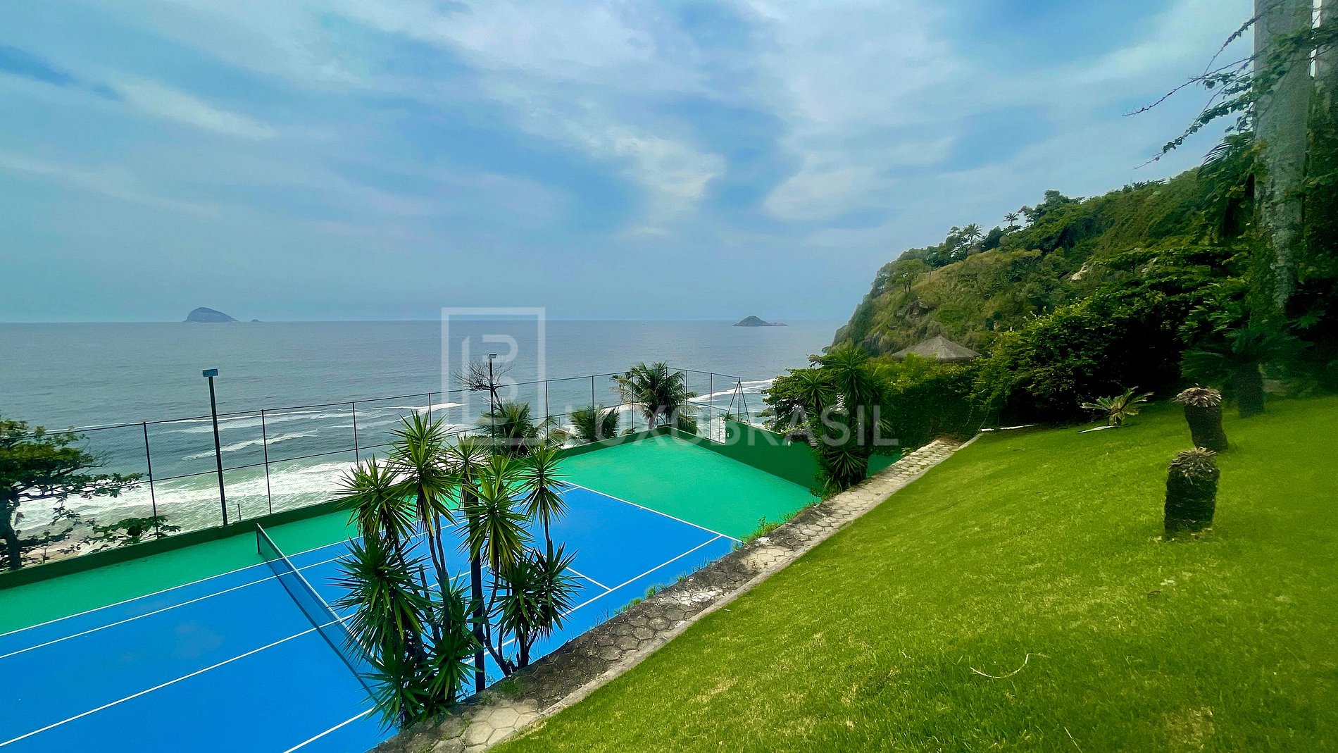 Villa con 3400m² de área total y 1200m² de área construida. Compuesto por un gran salón con 04 habitaciones, balcón con vistas al mar y montaña, 05 suites (01 principal con 02 vestidores), bañera de hidromasaje, 08 baños, cocina con armarios, pista polideportiva, zona de barbacoa, zona gourmet, piscina, jacuzzi, sauna y 06 plazas de aparcamiento.