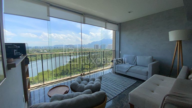 El área social es un verdadero espectáculo: la amplia sala de estar combina tres ambientes – sala de estar, sala de TV y comedor – conectados armoniosamente con una cocina de concepto abierto, creando un espacio luminoso y acogedor. Las grandes ventanas ofrecen vistas panorámicas del mar y de la laguna, brindando luz natural y momentos inolvidables. La suite principal también cuenta con un encantador balcón privado que incluye una práctica área de lavandería para mayor conveniencia.