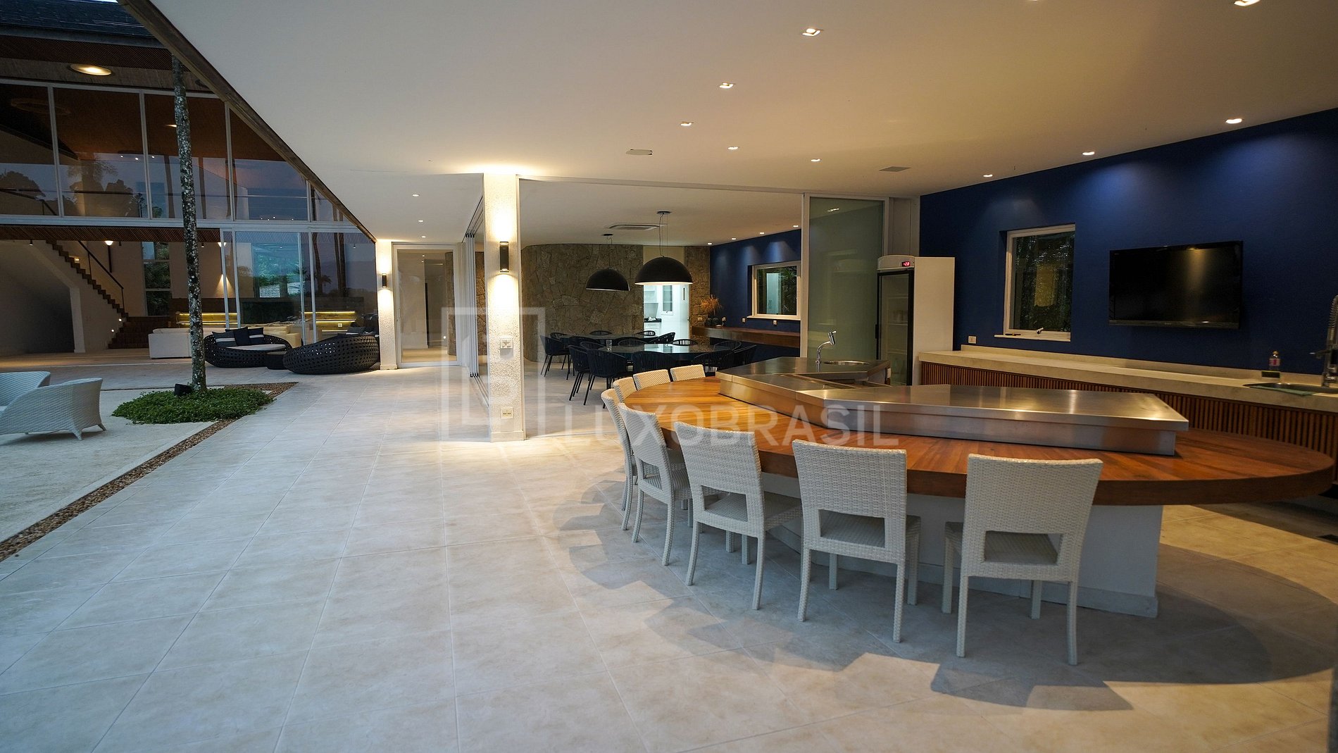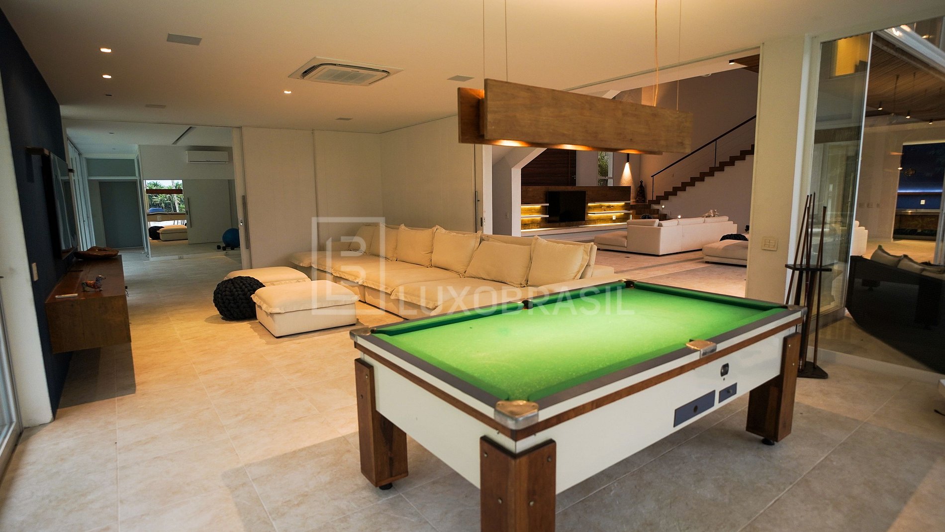 Os espaços integrados e exuberantes proporcionam uma experiência de vida fluída e elegante. A sala principal se funde harmoniosamente com o salão de jogos, criando uma atmosfera envolvente que se estende para as áreas de lazer da casa. A piscina de 25 metros, com sua extensão formando uma lagoa privativa, é uma verdadeira obra de arte aquática, enquanto a jacuzzi para seis adultos oferece um refúgio de serenidade com vistas panorâmicas deslumbrantes.