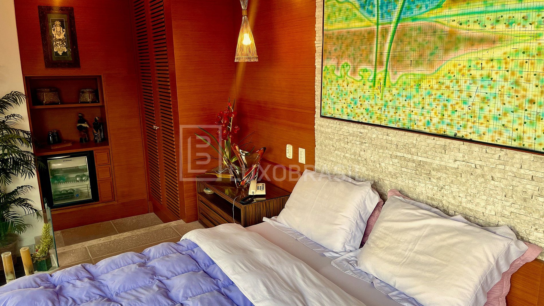 Imagine-se desfrutando da serenidade da sala de estar, onde as vistas panorâmicas do oceano se fundem com a tranquilidade do horizonte. Ou quem sabe, mergulhando na piscina infinita, distribuída em dois níveis, para uma imersão completa em paz e serenidade.