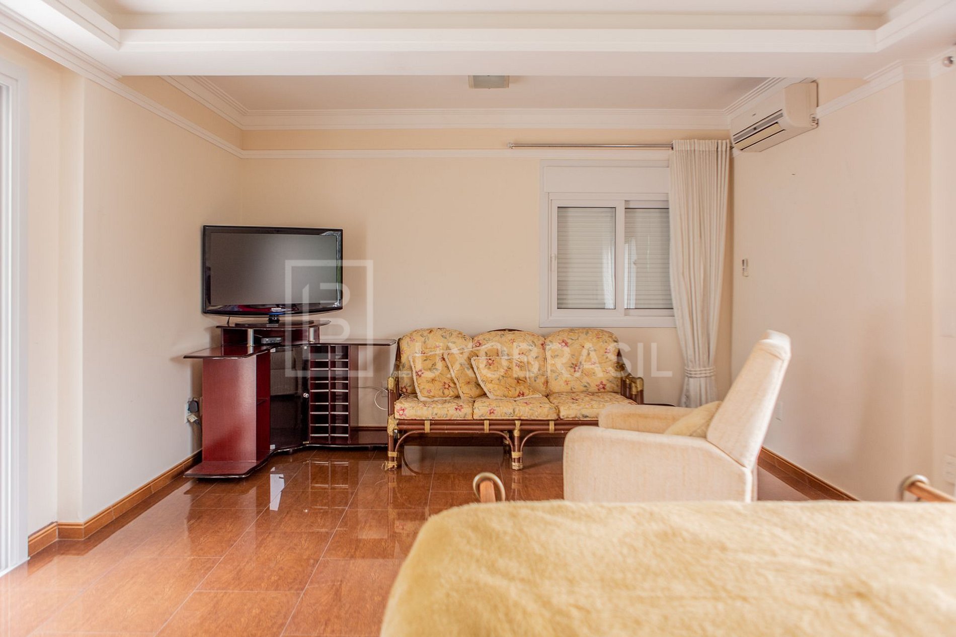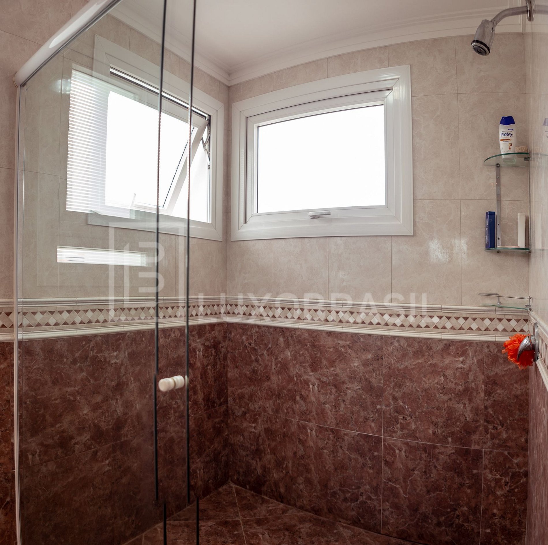 Além das suítes no andar superior, a propriedade dispõe de uma suíte adicional no térreo, ideal para hóspedes ou como espaço de serviço, adaptando-se às suas necessidades.