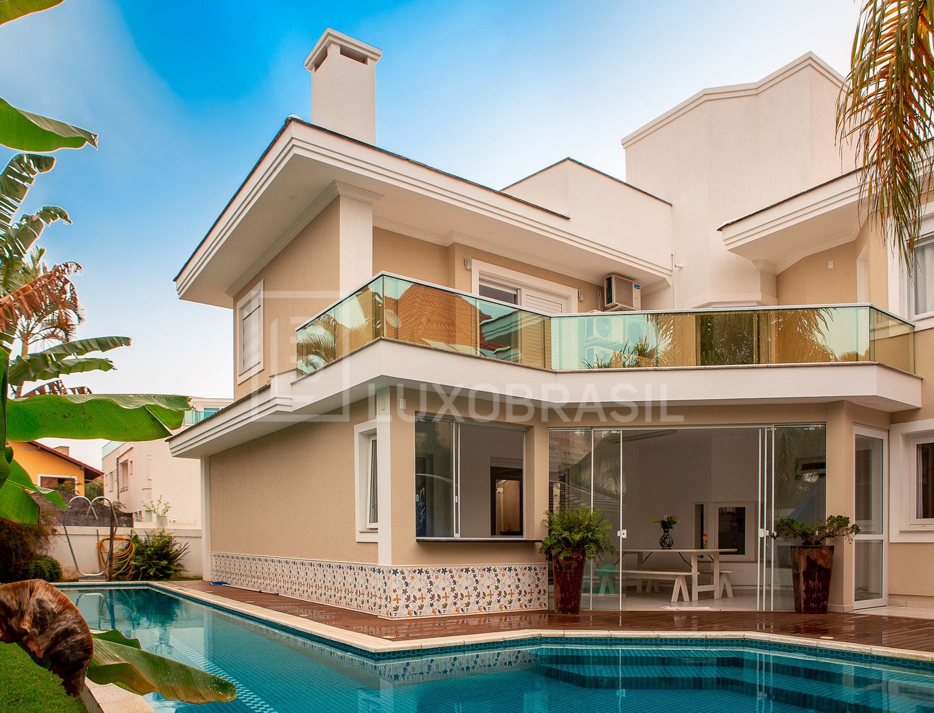Ao adentrar este oásis, seus olhos serão cativados pela magnífica piscina, cercada por um espaçoso deck de madeira que se estende elegantemente até uma área de convívio ao ar livre, completa com churrasqueira e uma acolhedora mesa, criando o ambiente perfeito para encontros memoráveis entre amigos e familiares.