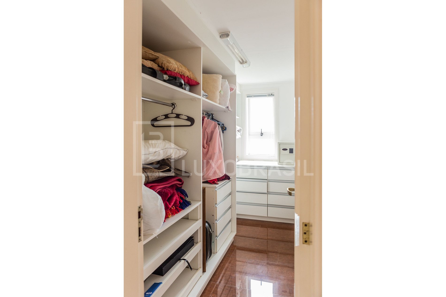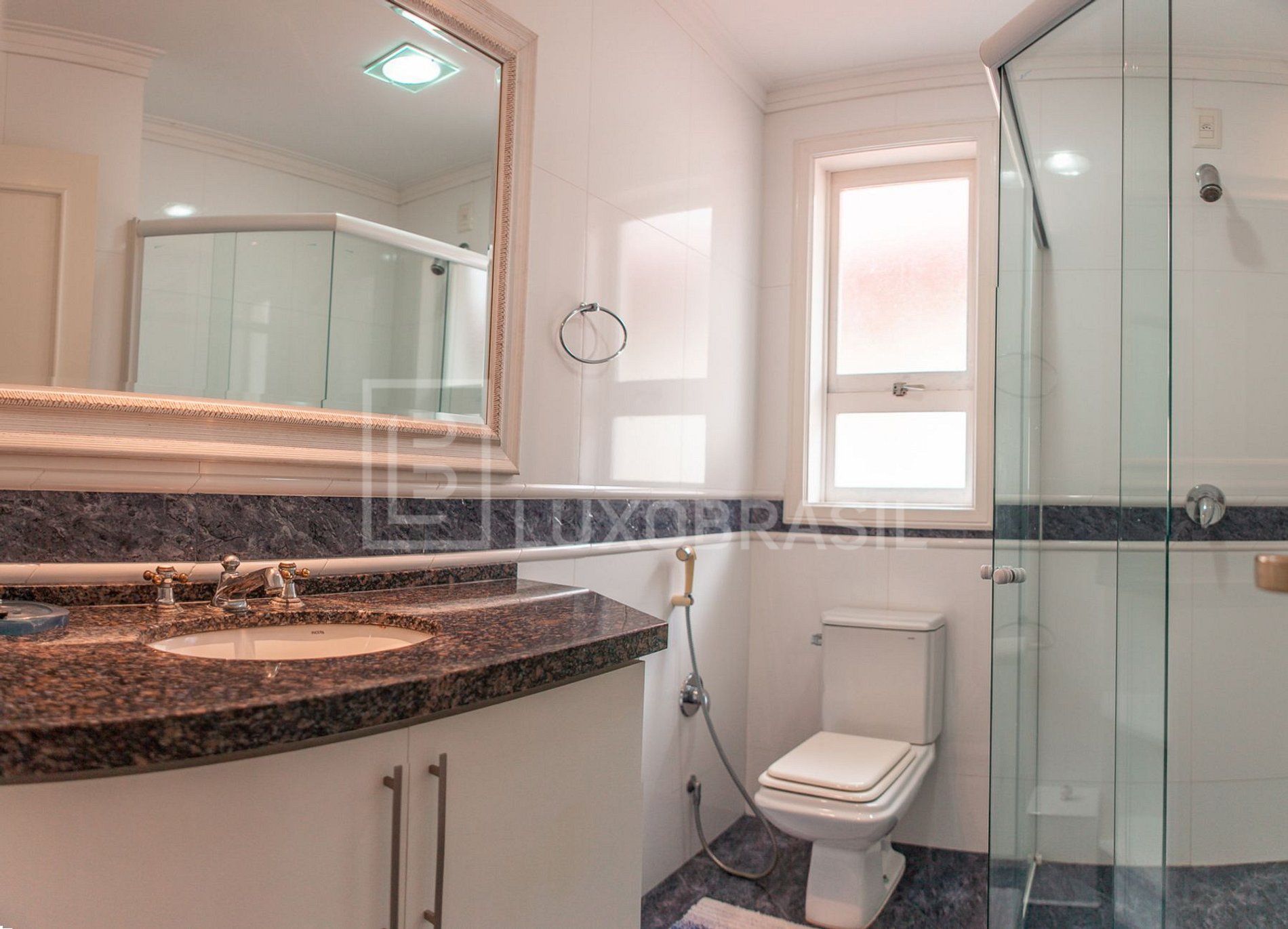 Além das suítes no andar superior, a propriedade dispõe de uma suíte adicional no térreo, ideal para hóspedes ou como espaço de serviço, adaptando-se às suas necessidades.