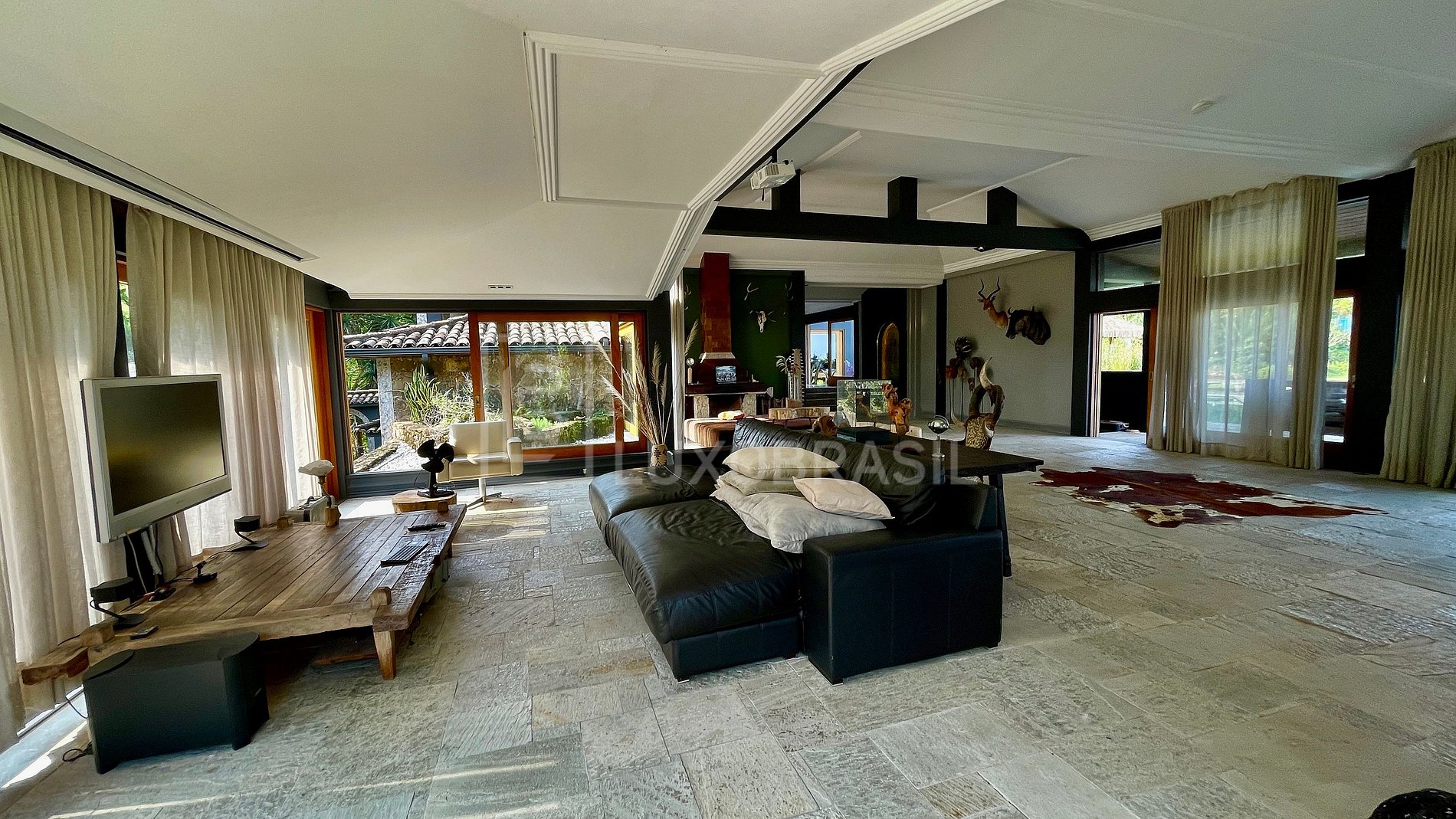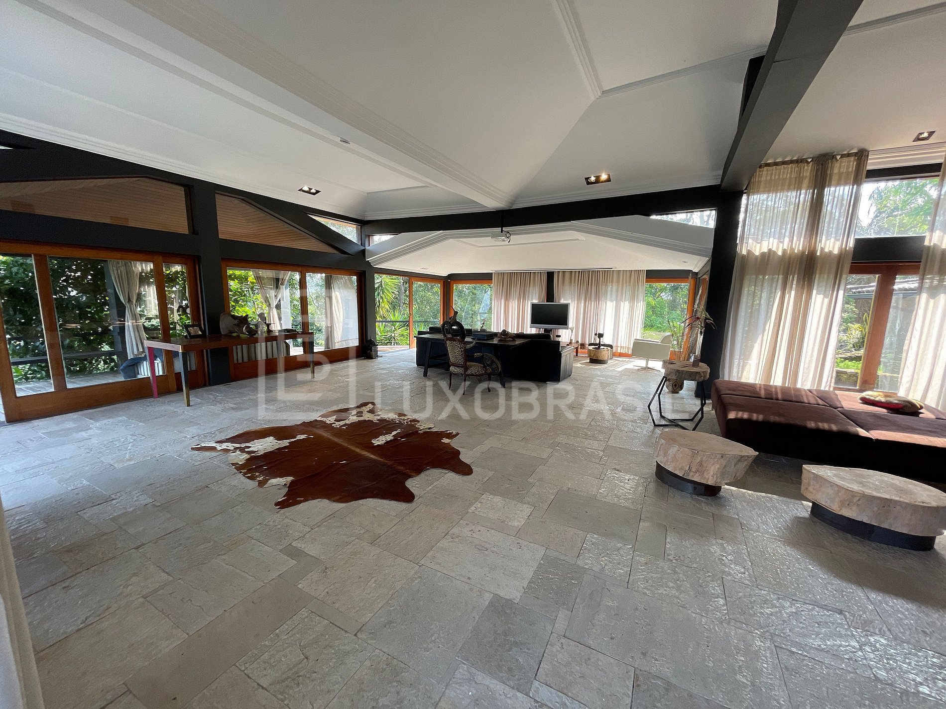 Mansão Clássica no Alto da Gávea, é dividida em 2 andares, com 04 quartos, sendo no primeiro andar: Hall de entrada, Sala de jantar, cozinha, lavabo, sala de leitura, grande salão com lareira interligado a varanda. A parte externa possui ampla piscina com bar e deck em madeira e uma vista espetacular das montanhas e do Cristo Redentor. No segundo andar ficam 3 quartos, todos com vista para Floresta da Tijuca. O imóvel possui um apartamento independente com 1 quarto, podendo ser adicionado até mais 3 camas de solteiro (valor adicional por pessoa *consultar);
