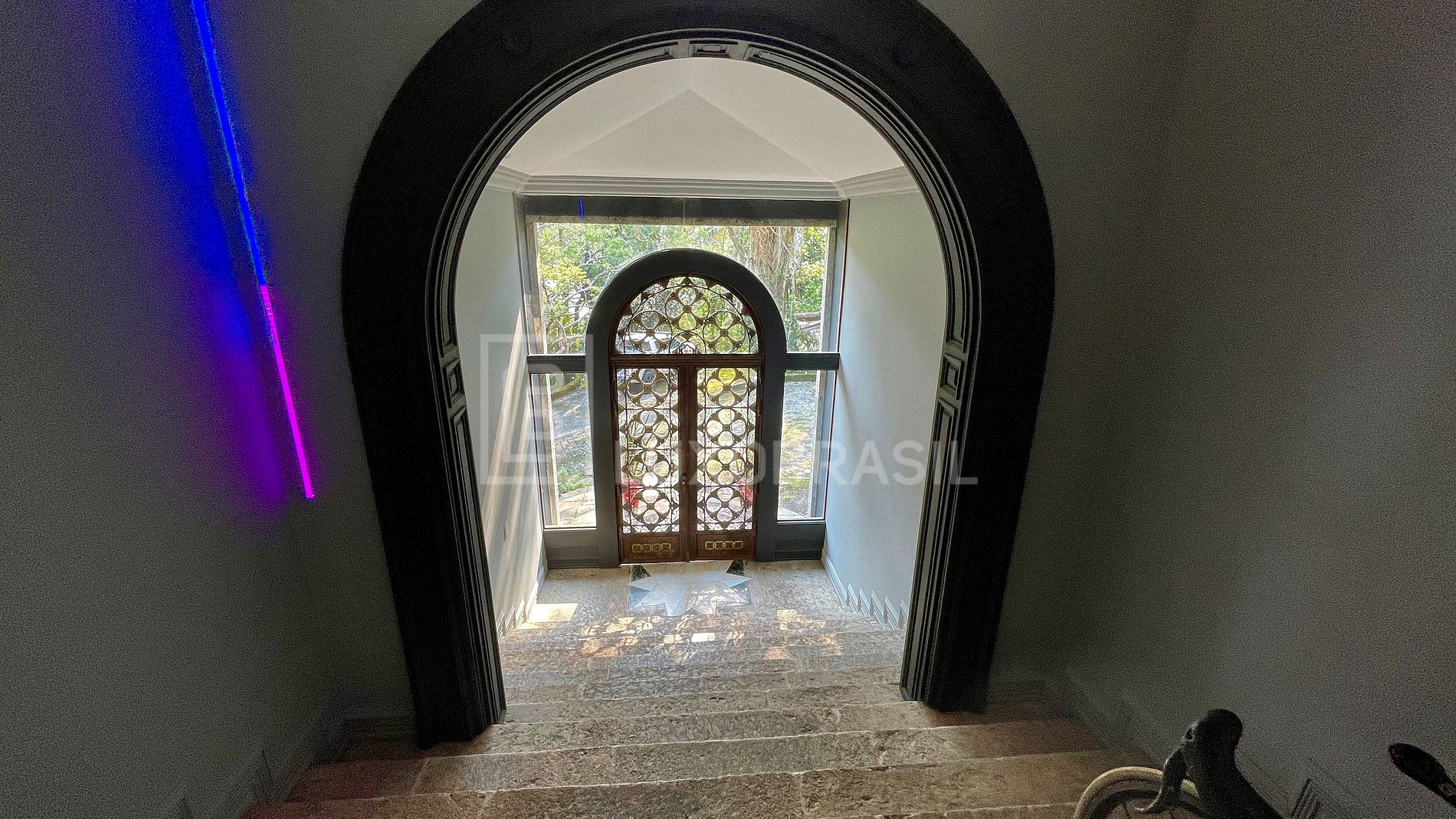 Mansão Clássica no Alto da Gávea, é dividida em 2 andares, com 04 quartos, sendo no primeiro andar: Hall de entrada, Sala de jantar, cozinha, lavabo, sala de leitura, grande salão com lareira interligado a varanda. A parte externa possui ampla piscina com bar e deck em madeira e uma vista espetacular das montanhas e do Cristo Redentor. No segundo andar ficam 3 quartos, todos com vista para Floresta da Tijuca. O imóvel possui um apartamento independente com 1 quarto, podendo ser adicionado até mais 3 camas de solteiro (valor adicional por pessoa *consultar);