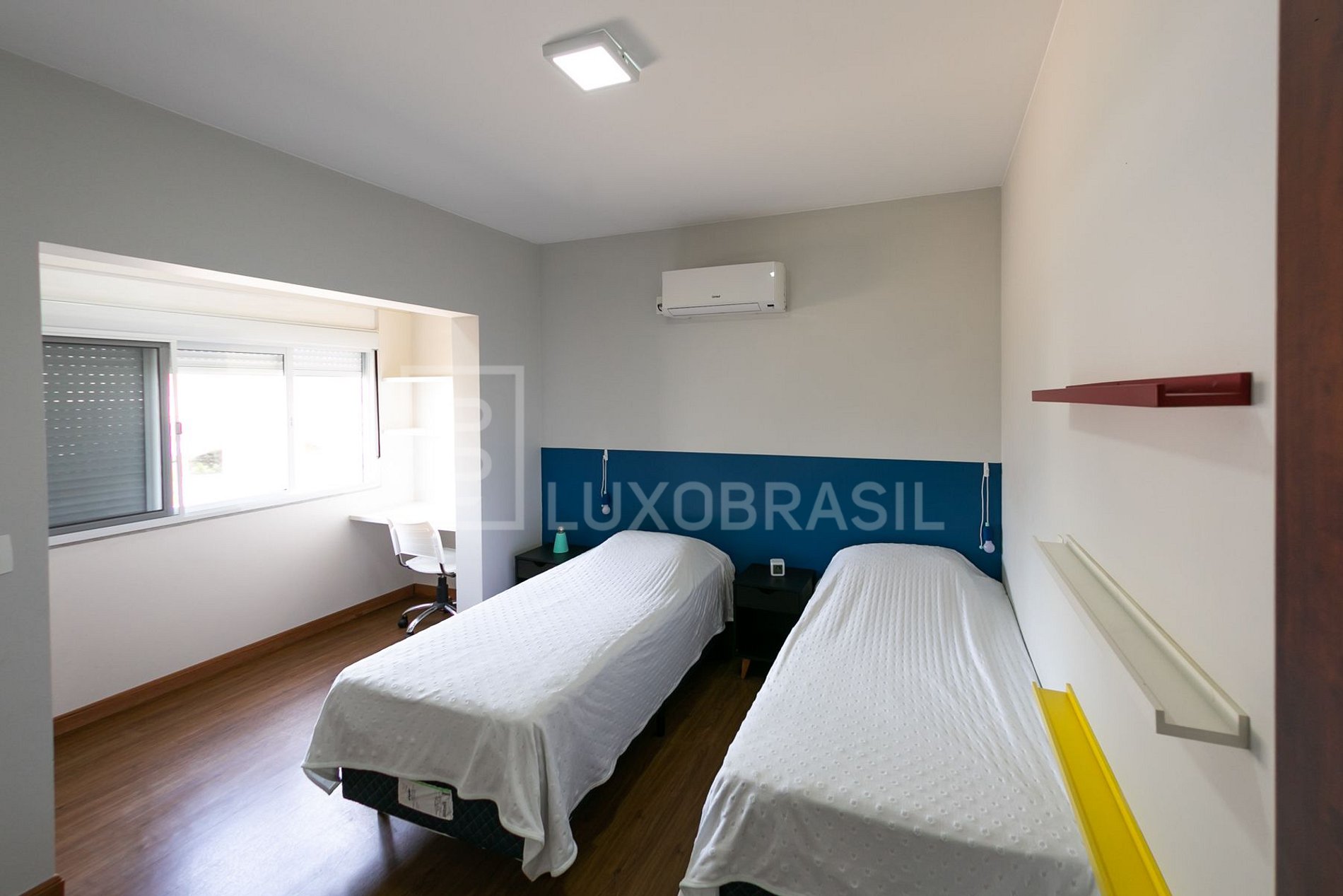 No total, a casa possui quatro quartos, incluindo uma suíte, e conta com sete unidades de ar condicionado para proporcionar o máximo de conforto aos seus hóspedes.