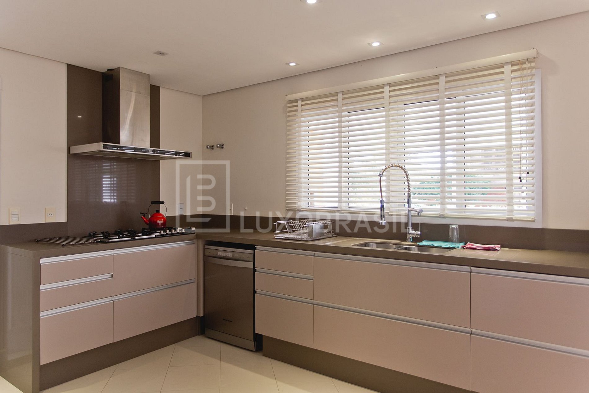 No mesmo ambiente temos a cozinha de primeira linha, revestida com acabamentos premium. Possui eletrodomésticos e utensílios completos para aqueles que curtem cozinhar.